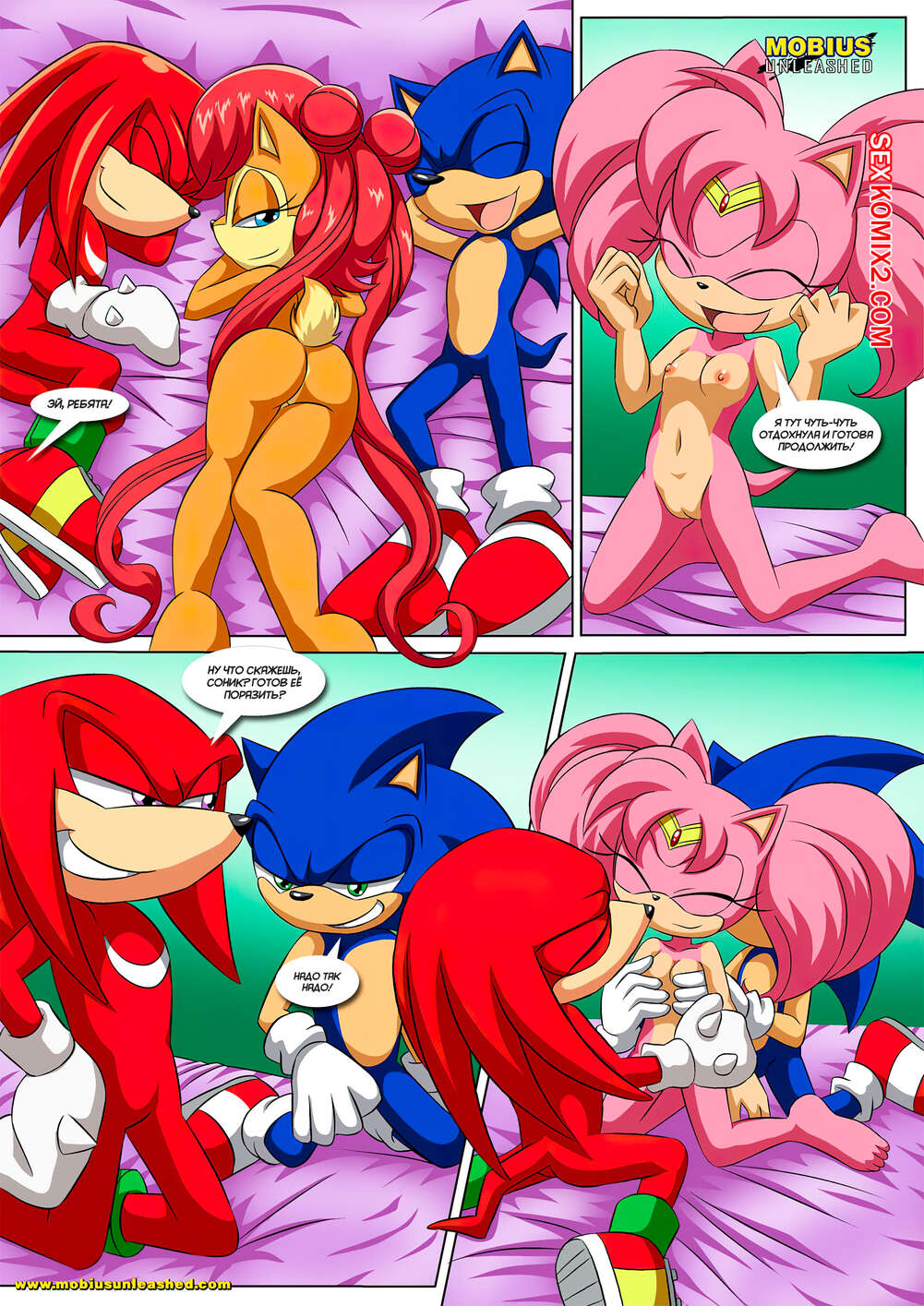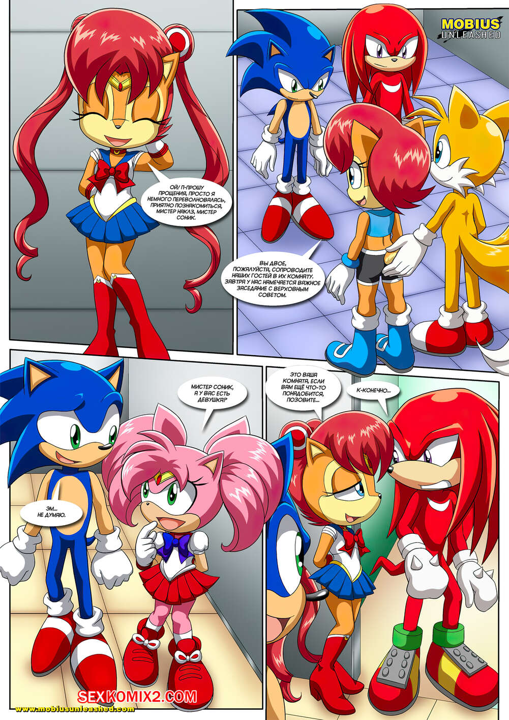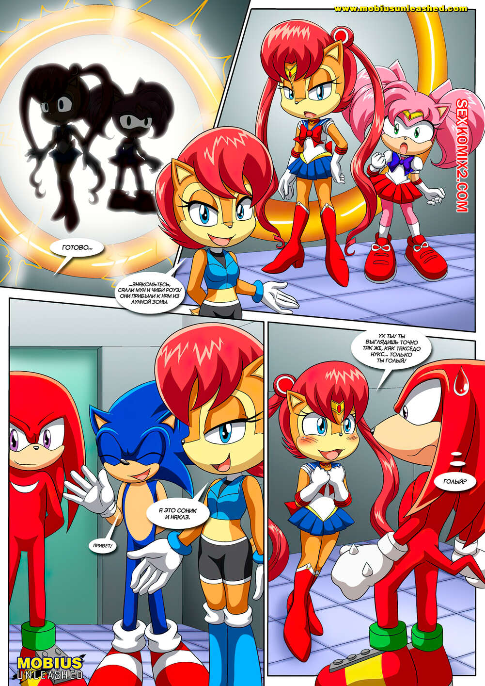 Порно комикс Sonic The Hedgehog. Лунная связь. The Luna Connection. Palcomix Горячие красотки были очень возбуждены и хотели трахаться. Они разделись и стали сосать большие хуи своих дружков, после чего дали им себя хорошенько выебать во все дырочки.