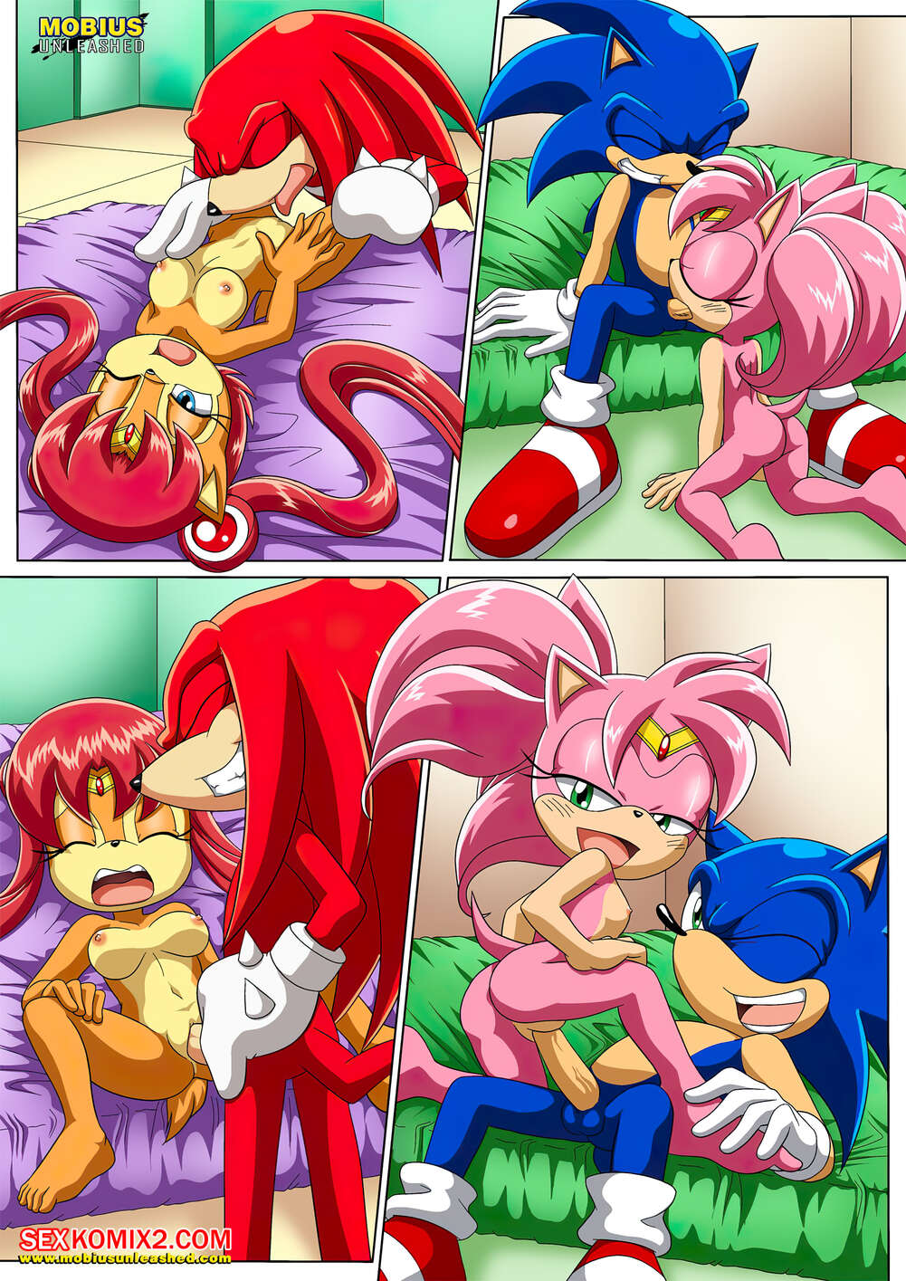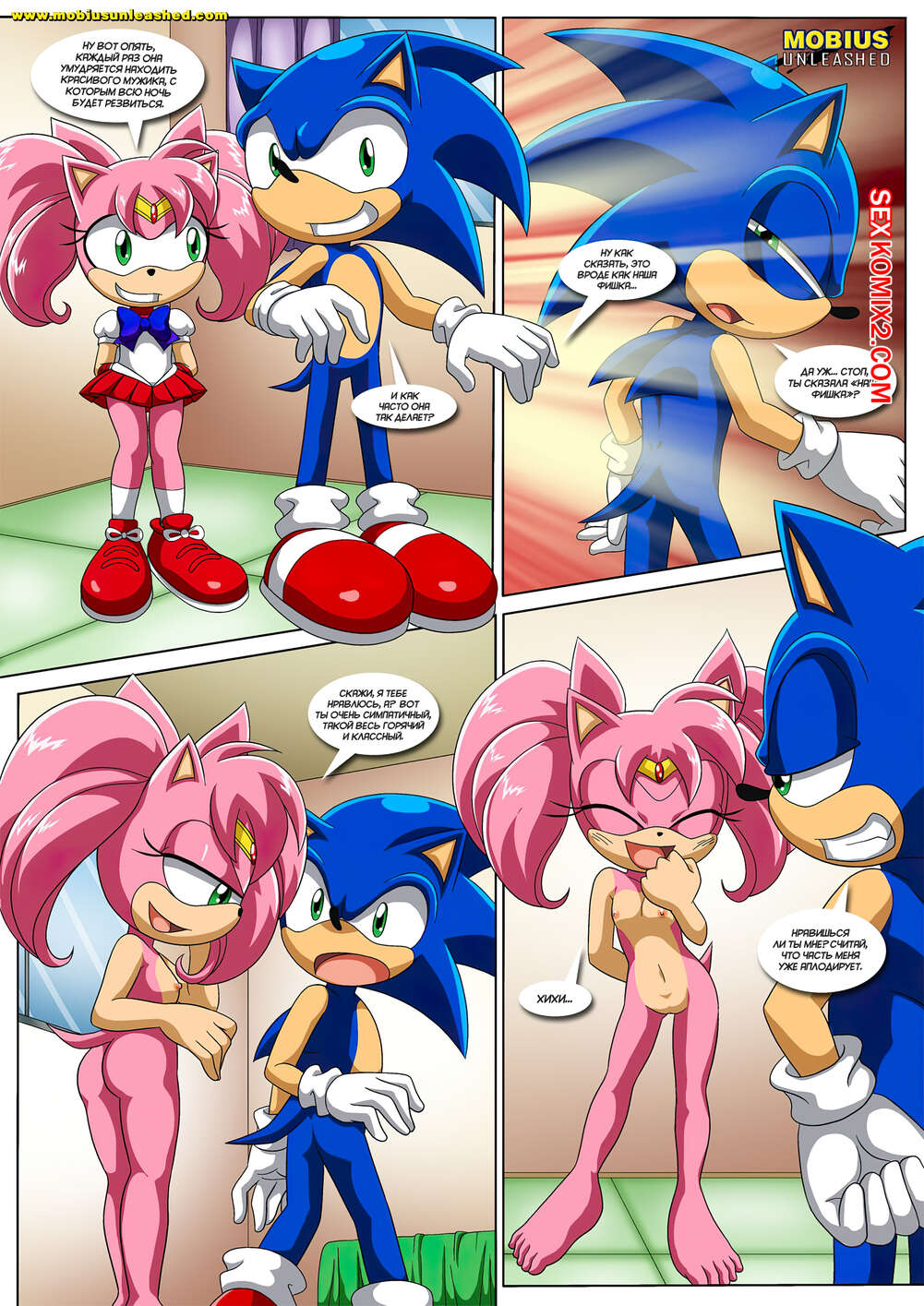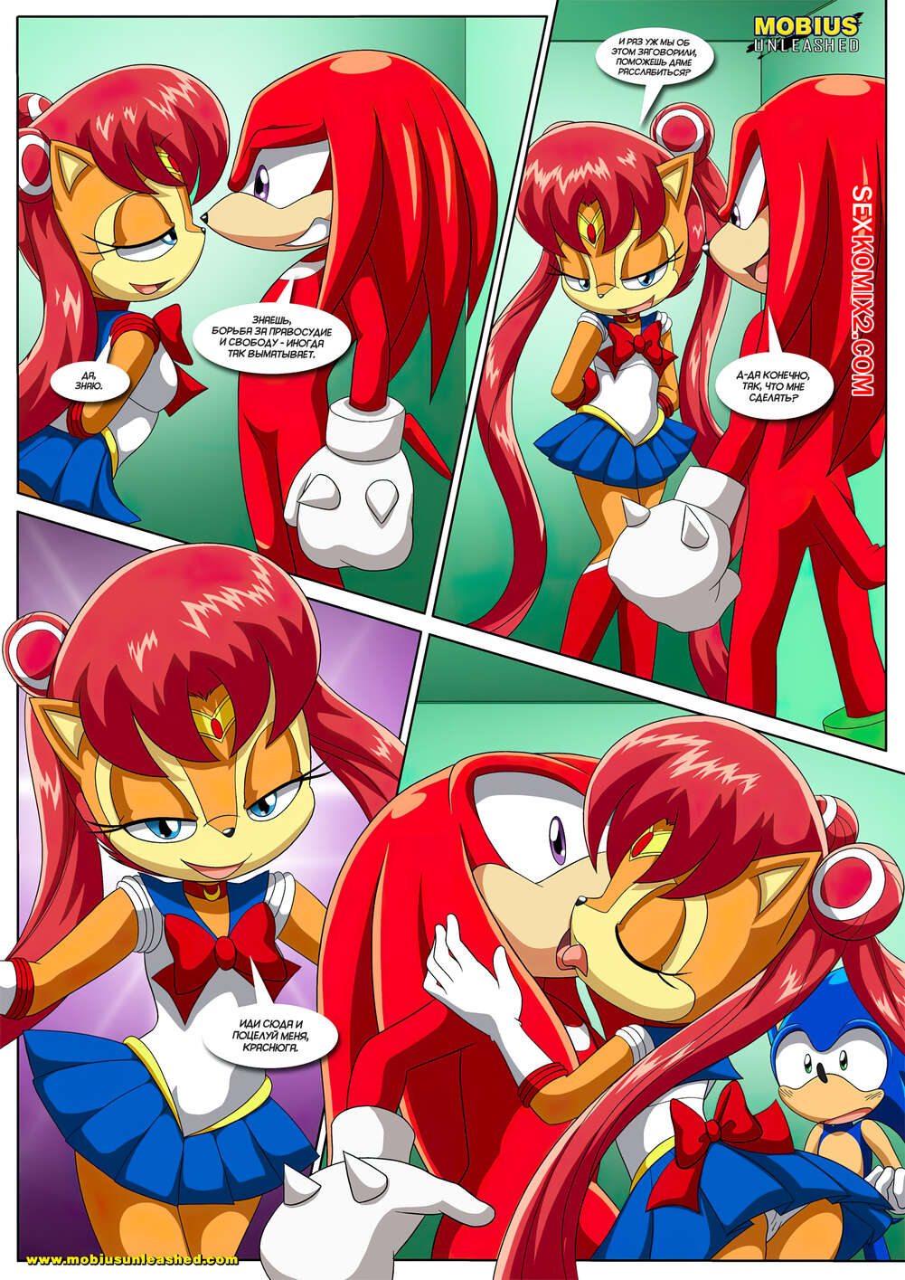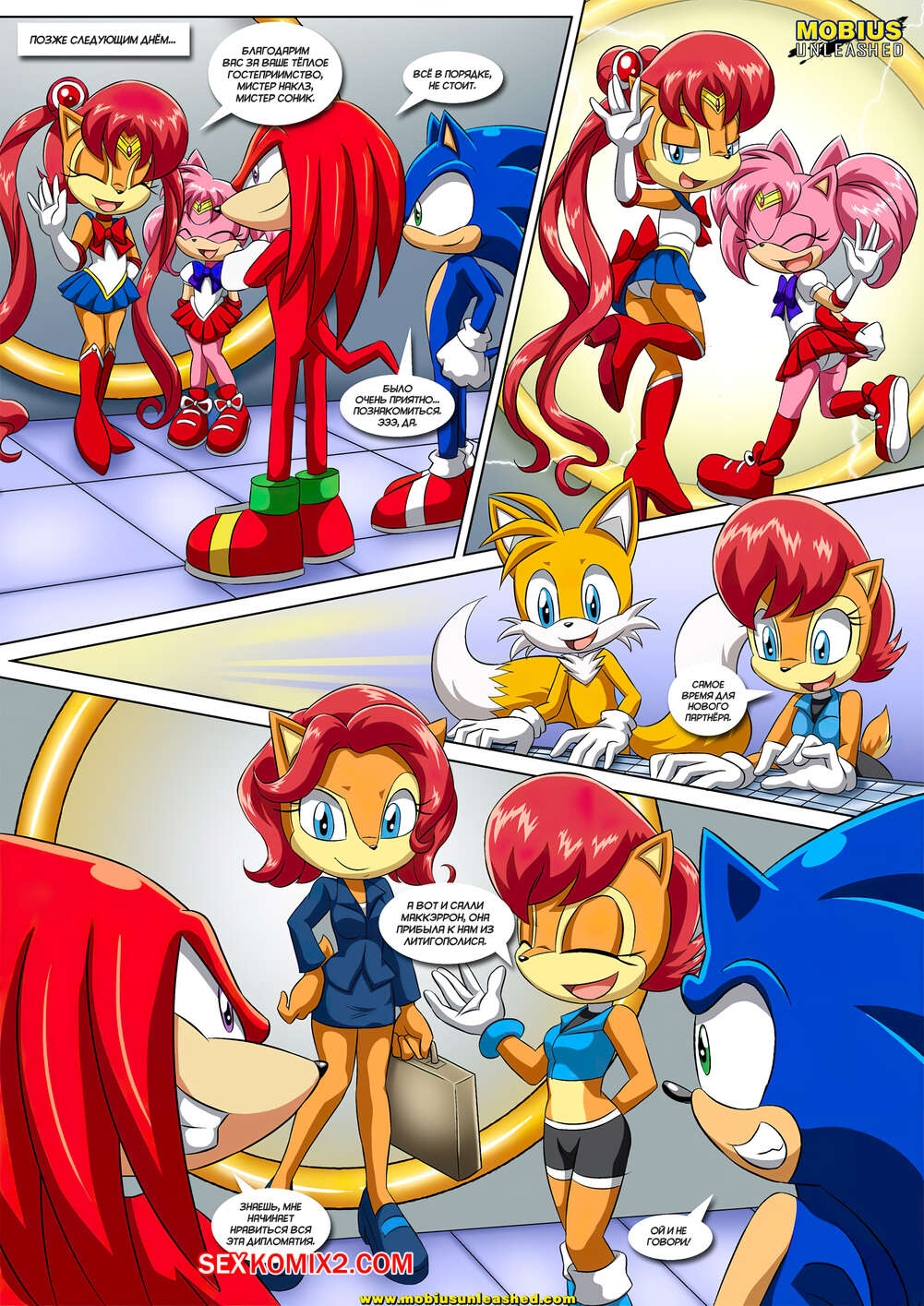 Порно комикс Sonic The Hedgehog. Лунная связь. The Luna Connection. Palcomix Горячие красотки были очень возбуждены и хотели трахаться. Они разделись и стали сосать большие хуи своих дружков, после чего дали им себя хорошенько выебать во все дырочки.