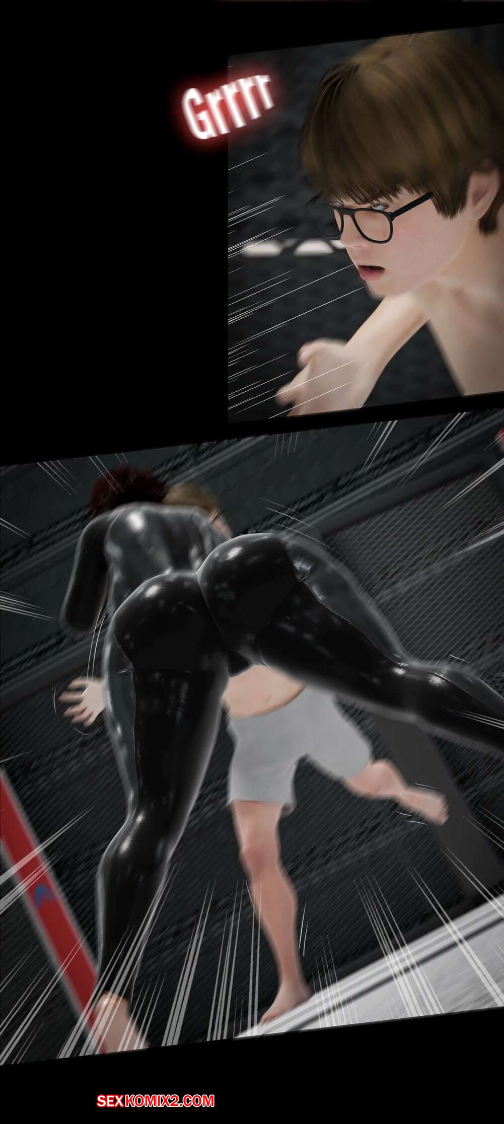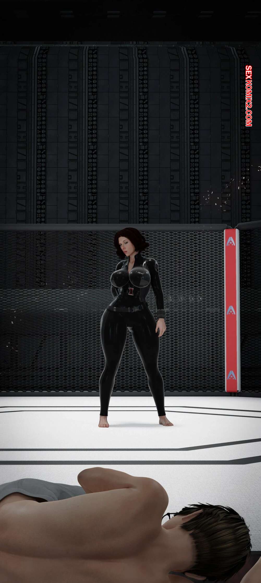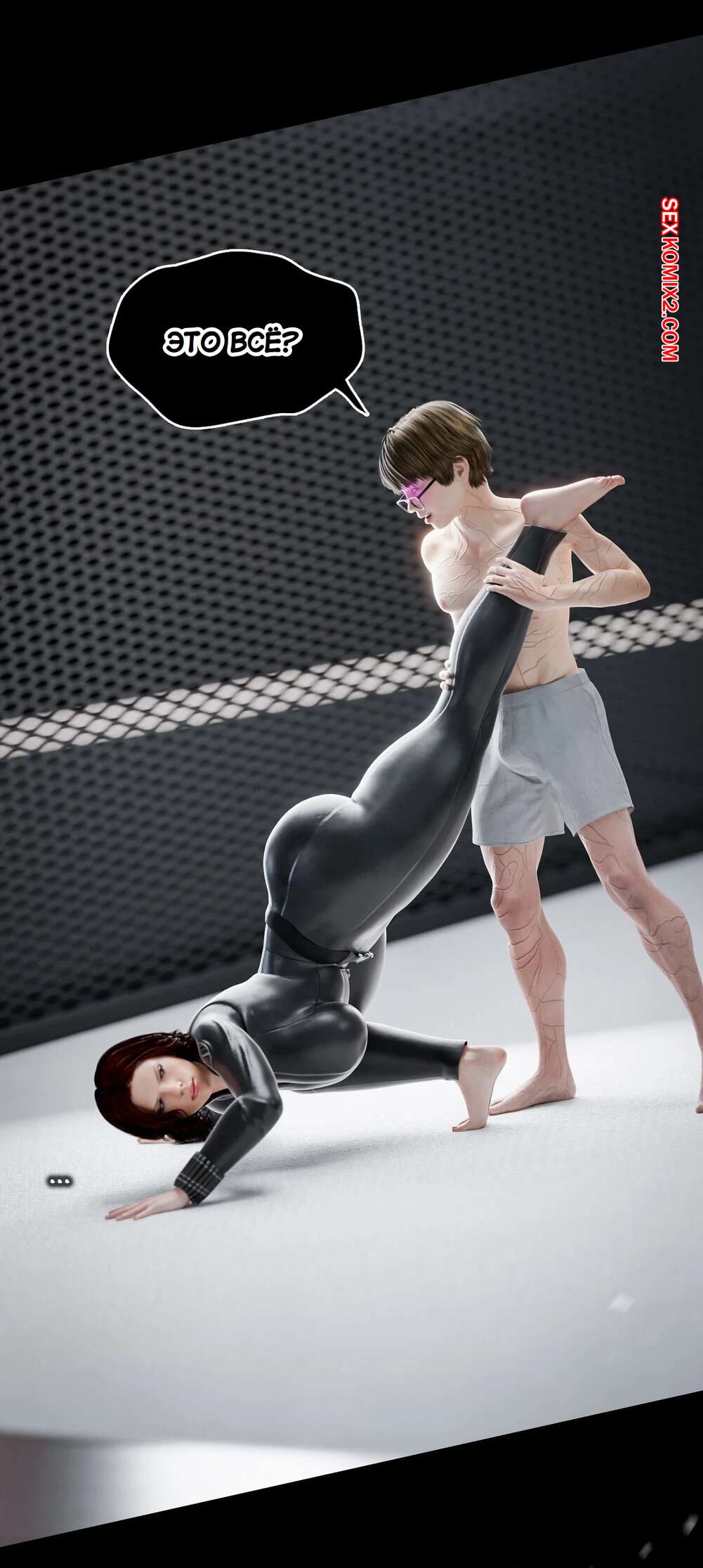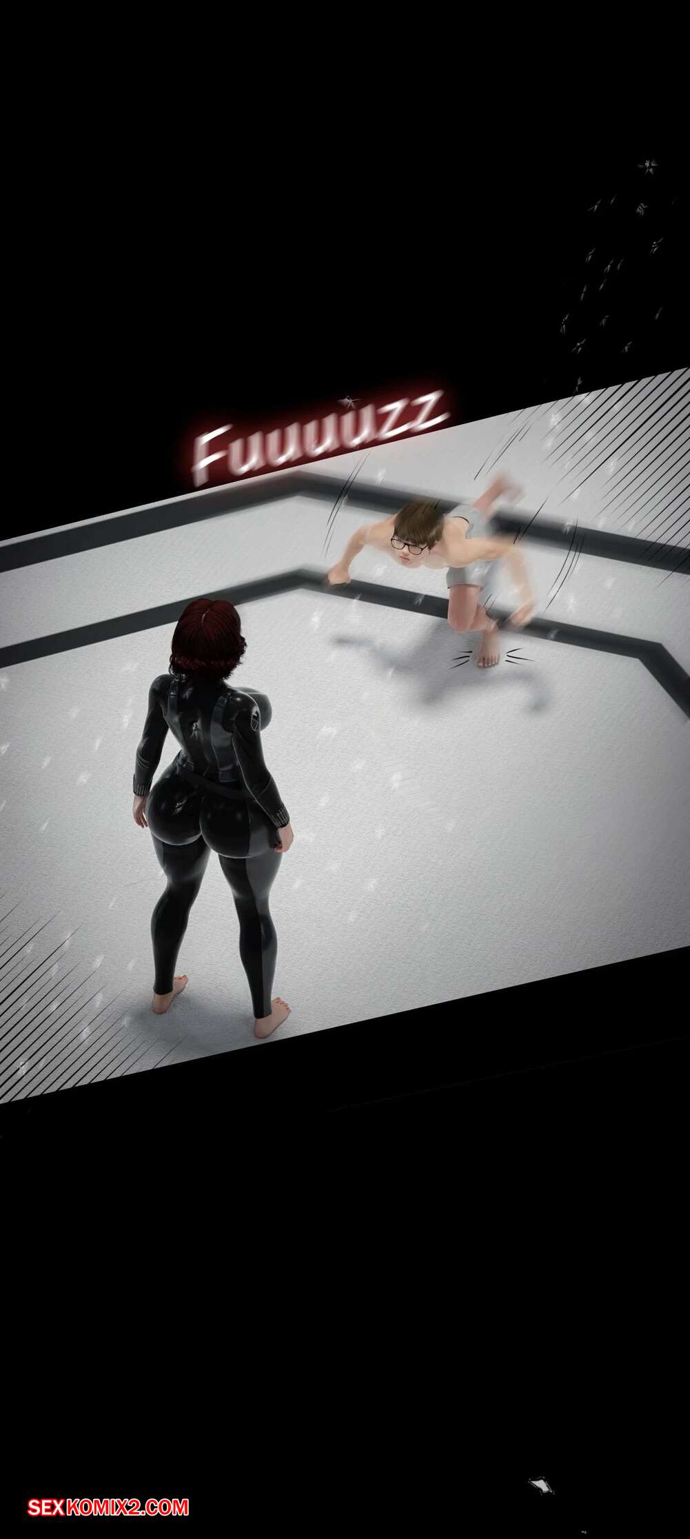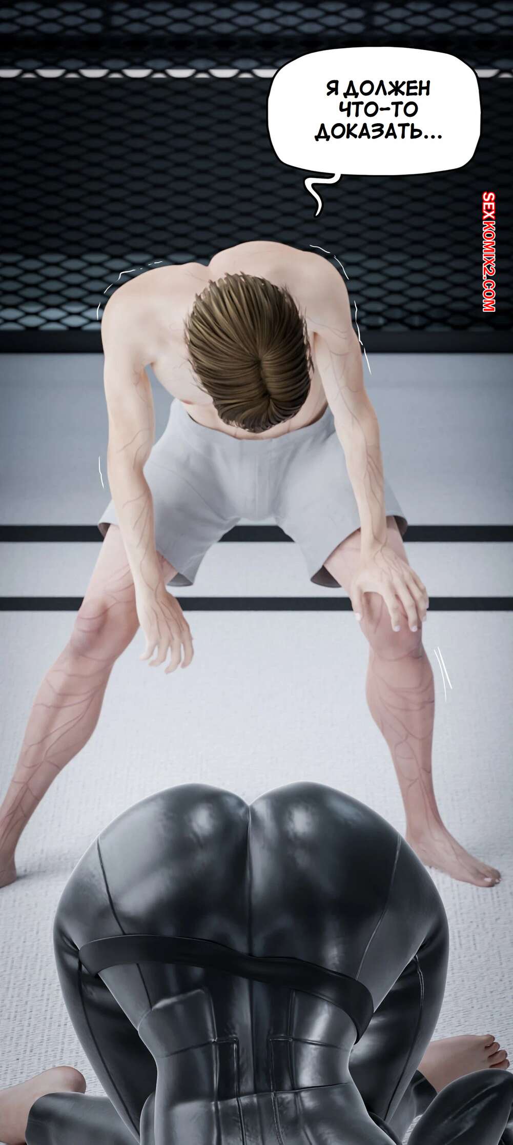 Порно комикс Моя соседская вдова. Часть 13. My Neighbors Widow. Rose Blue 3D. Сисястая брюнетка милфа вызвала молодого парня на спаринг. Красотка стала бороться с парнем, прижимаясь к нему своим шикарным телом и возбуждая молодого соперника.