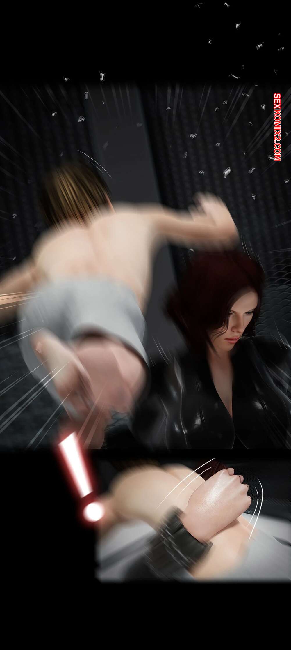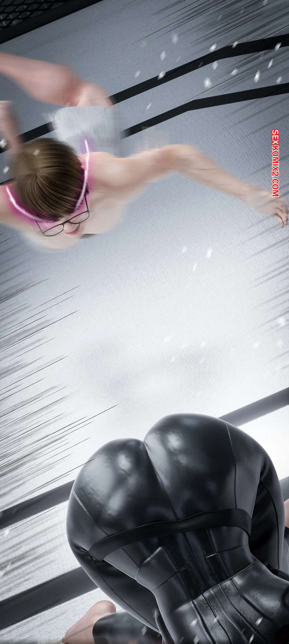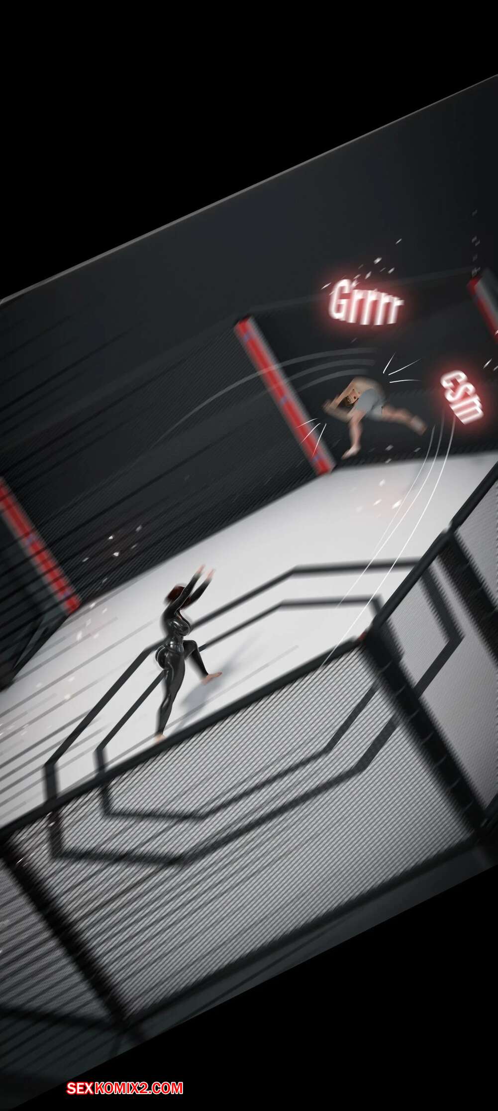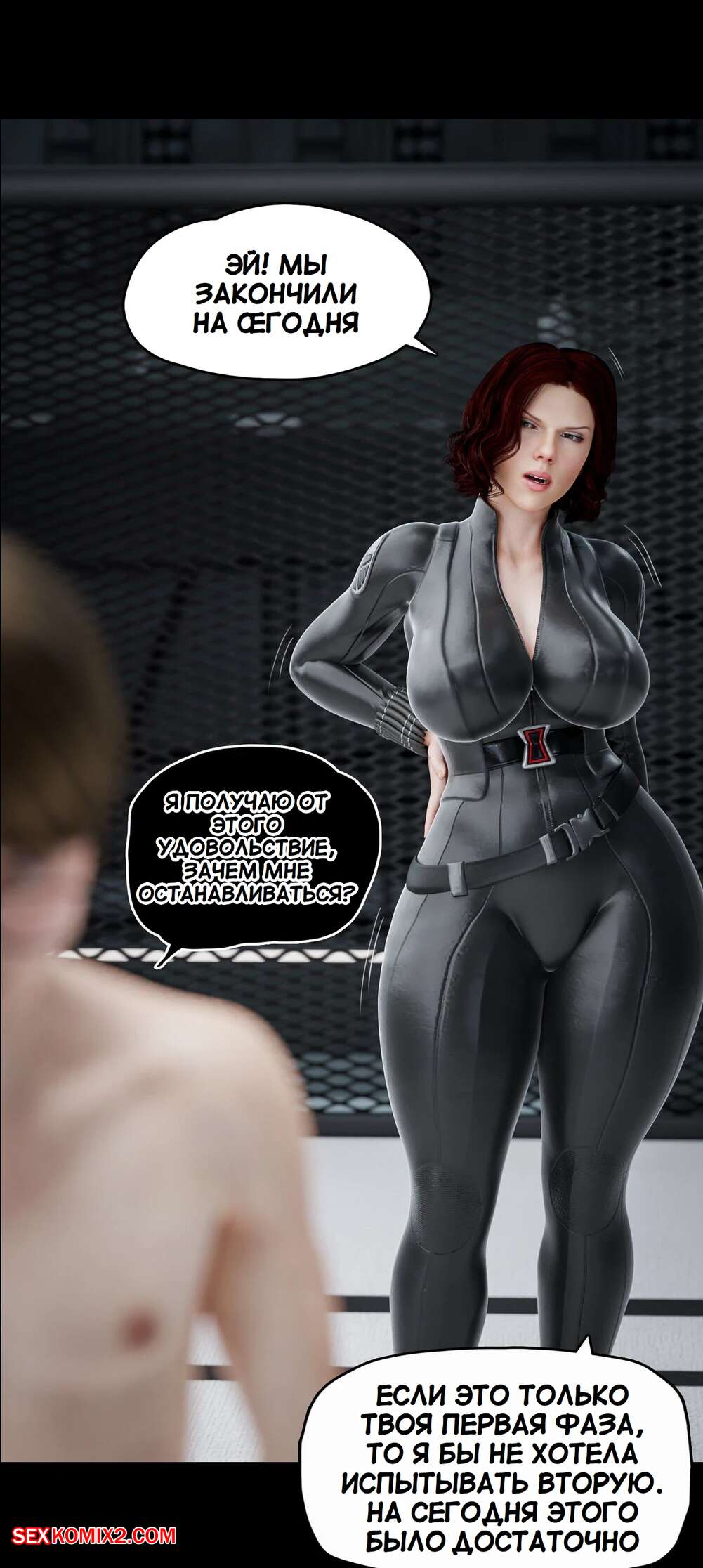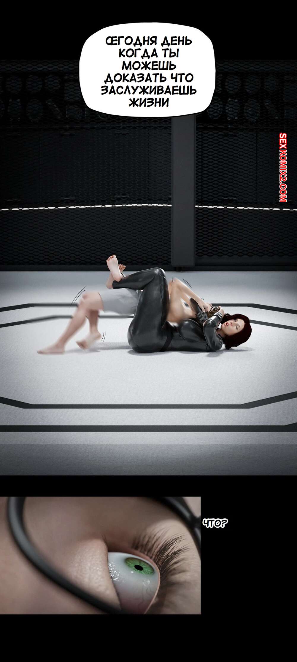 Порно комикс Моя соседская вдова. Часть 13. My Neighbors Widow. Rose Blue 3D. Сисястая брюнетка милфа вызвала молодого парня на спаринг. Красотка стала бороться с парнем, прижимаясь к нему своим шикарным телом и возбуждая молодого соперника.