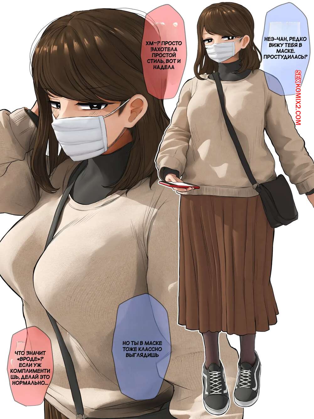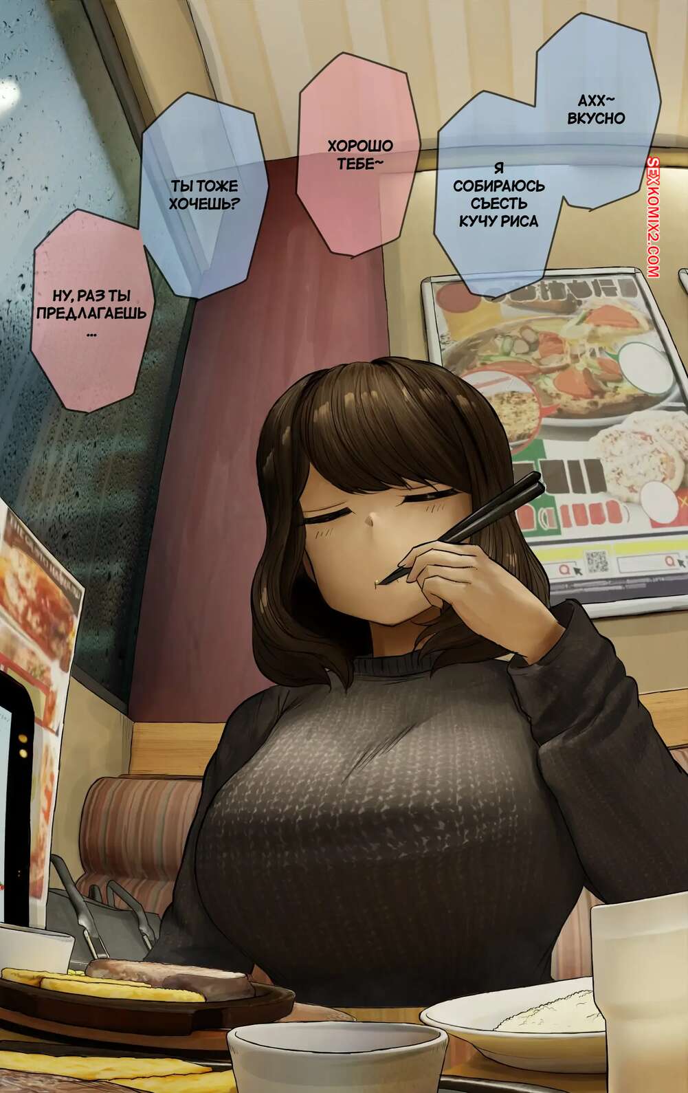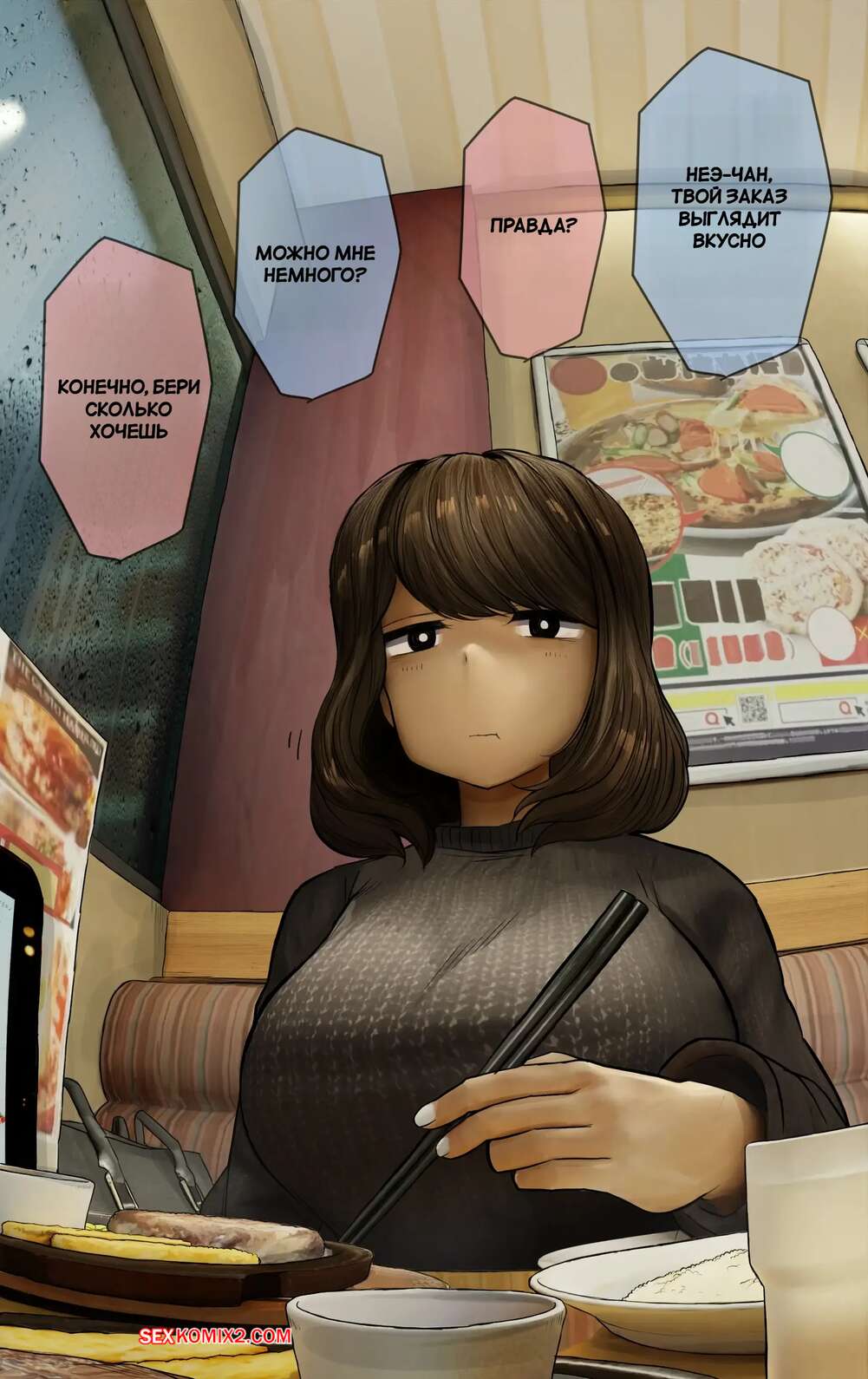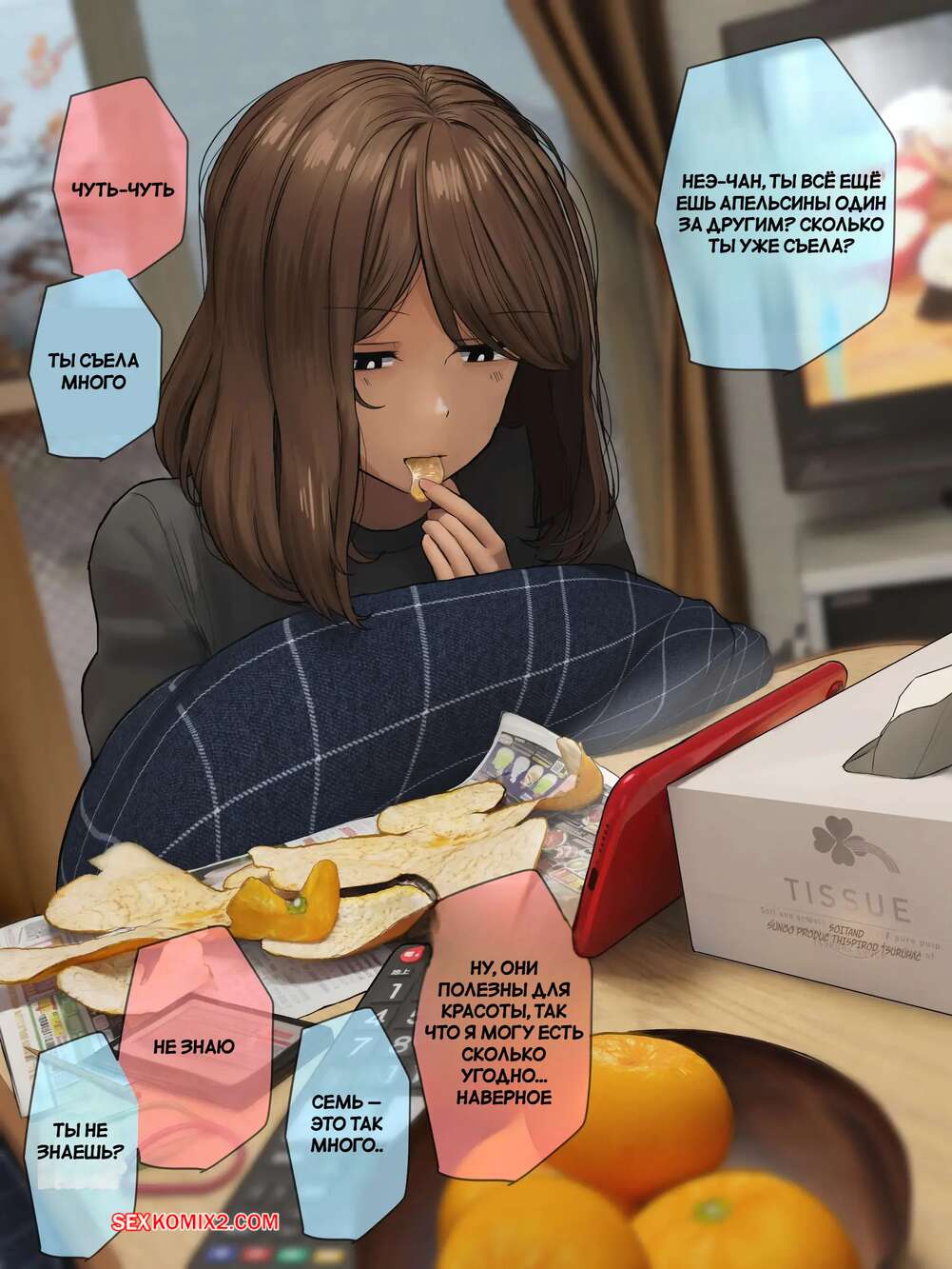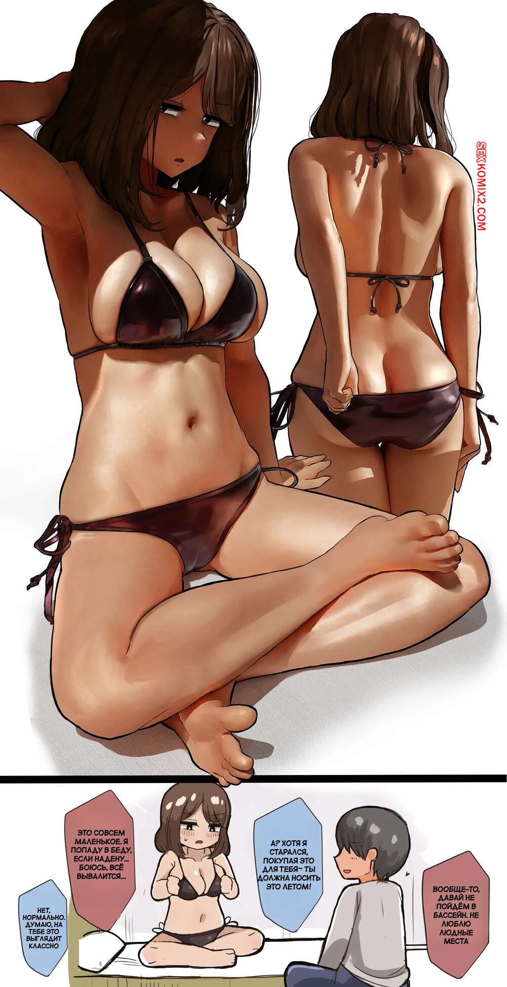Порно комикс Ежедневные разговоры с моей старшей сестрой. WayVZ. Сексуальная брюнетка без ума от большого члена своего братика. Красотка раздевается перед парнем и сосет его большой хуй, после чего дает ему выебать свою пизденку.
