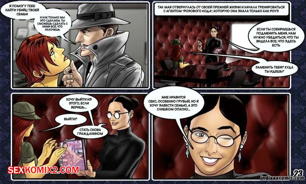Порно комикс Майя. Часть 5. Рождение агента. Maya. Birth Of An Agent. Kirtu. Горячая брюнетка была очень возбуждена и решила повеселиться с двумя парнями. Она разделась и отсосала их большие хуи, после чего дала им себя хорошенько выебать.