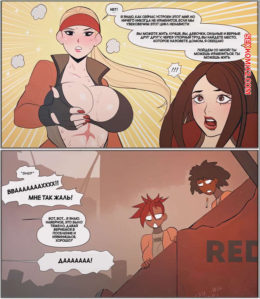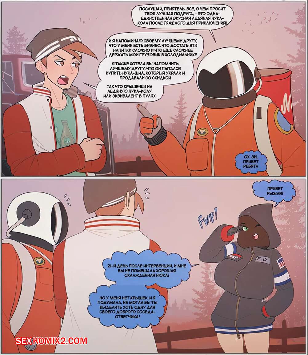 Порно комикс Squadron 32. Последствия без прикрытия. Fallout Unsheltered. The Kite Горячие сисястые красотки без ума от больших хуев своих подруг. Они раздеваются и сосут большие хуи девушек, после чего дают им себя хорошенько выебать во все дырочки.