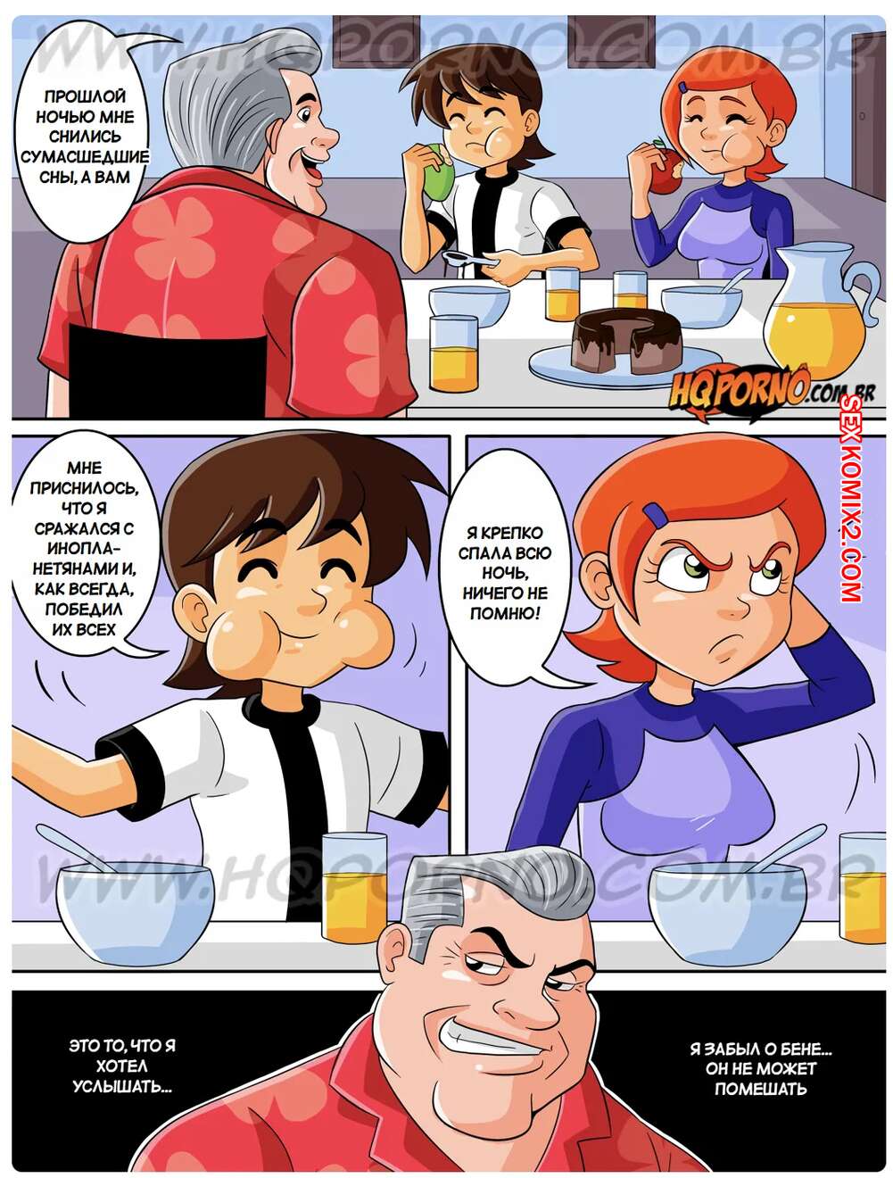 Порно комикс Бен 10. Часть 9. Benn 10. HQporno Старик выяснил, что Гвен ходит во сне, и решил воспользоваться моментом. Он пришел ночью в комнату к внучке и дал ей отсосать свой большой хуй, после чего выебал ее во все дырочки.