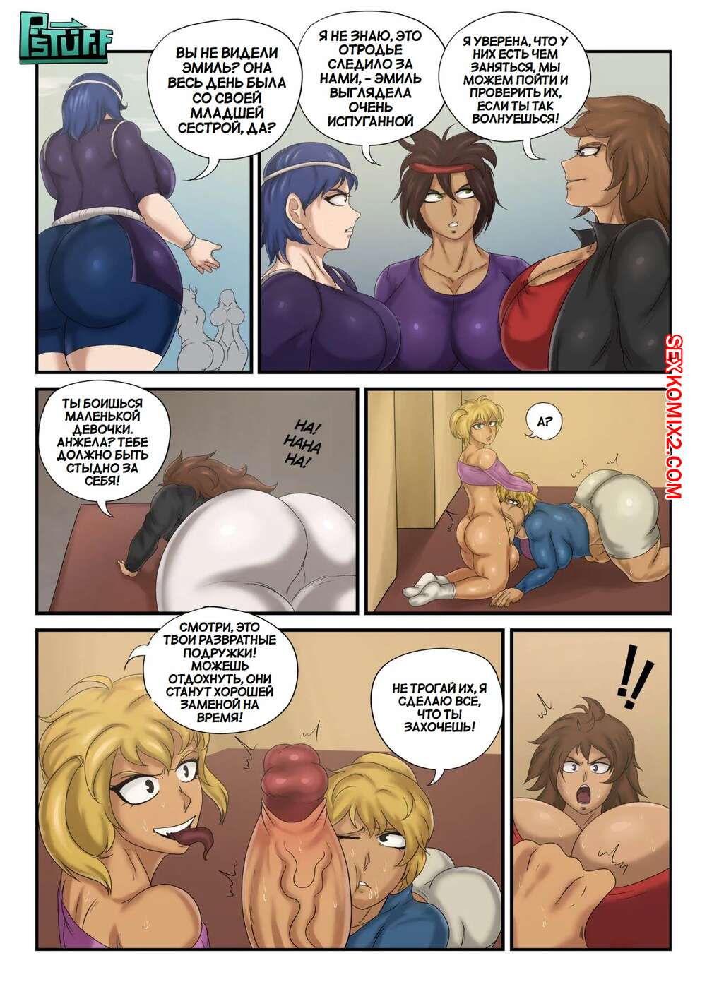 Порно комикс Сосуды для спермы маленькой сестренки. Little sisters cumdumps. Psychostuff Горячая блондинка с большим членом была очень возбуждена и решила повеселиться со своими старшими сестрами. Девушка раздела сестренок и дала им отсосать свой огромный хуй, после чего выебала их во все дырочки.