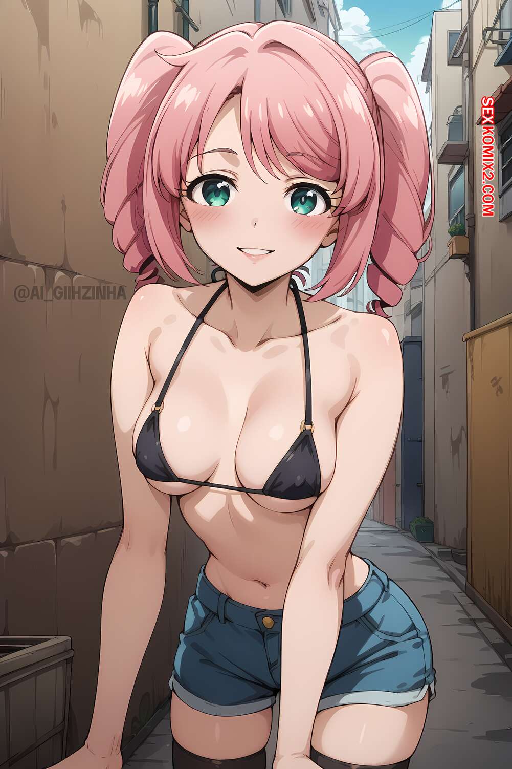 Порно комикс Alley Fun. AI Giihzinha Горячая красотка познакомилась на улице с парнем и решила с ним повеселиться. Девушка разделась и возбудила парня шикарным телом, после чего стала ласкать его большой хуй.
