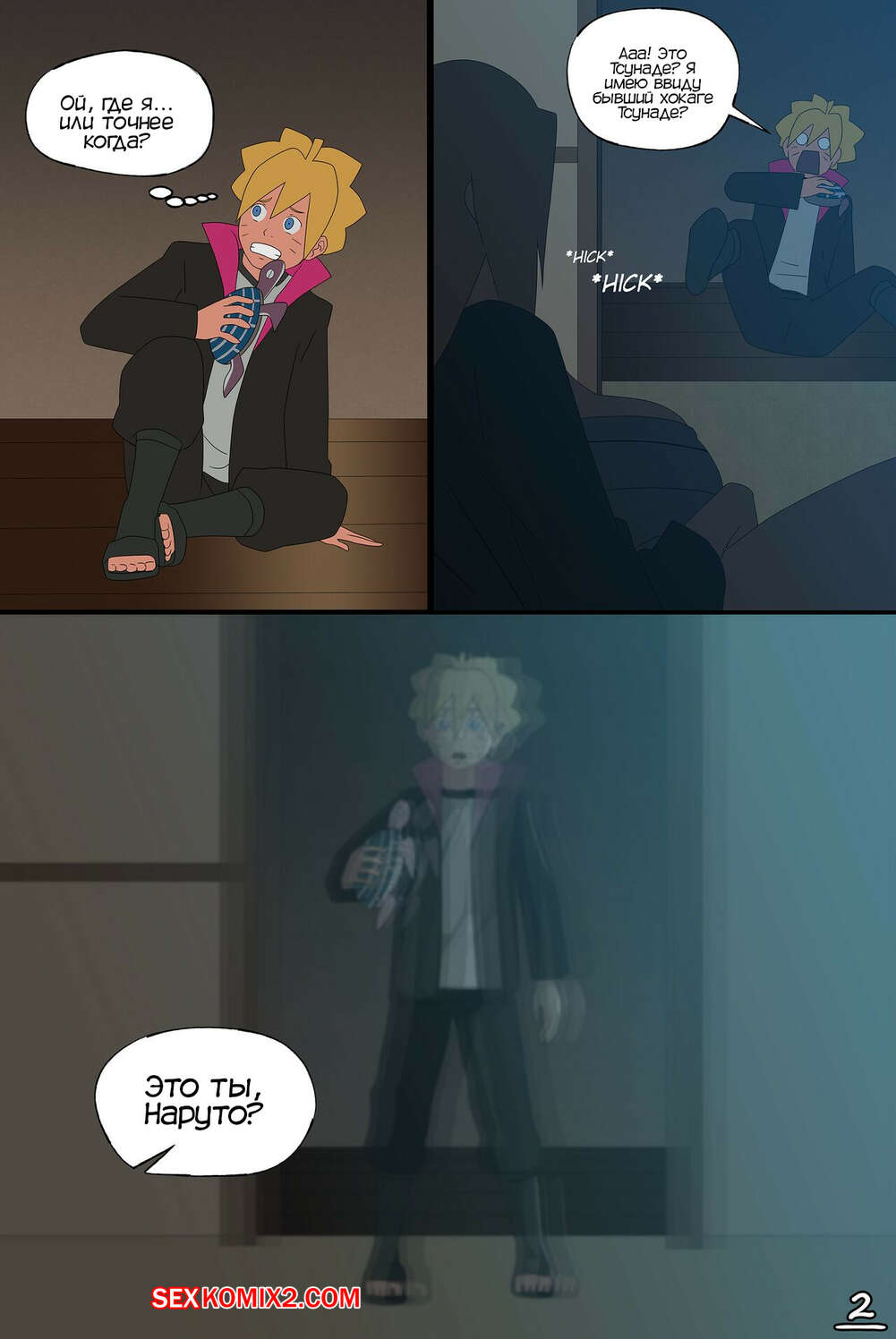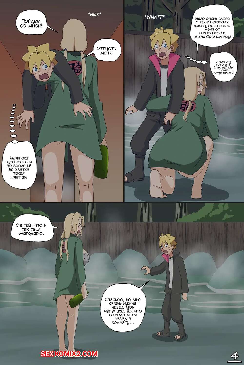 Порно комикс Наруто. Ошибка Тсунаде. Tsunades Mistake Боруто стащил у Саске вещицу и с ее помощью случайно оказался в прошлом. Парень встретил Тсунаде, которая перепутала парня с Наруто и решила заняться с ним сексом.