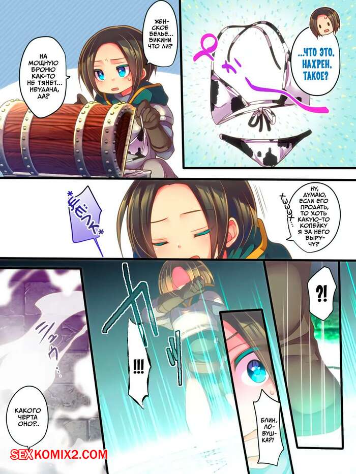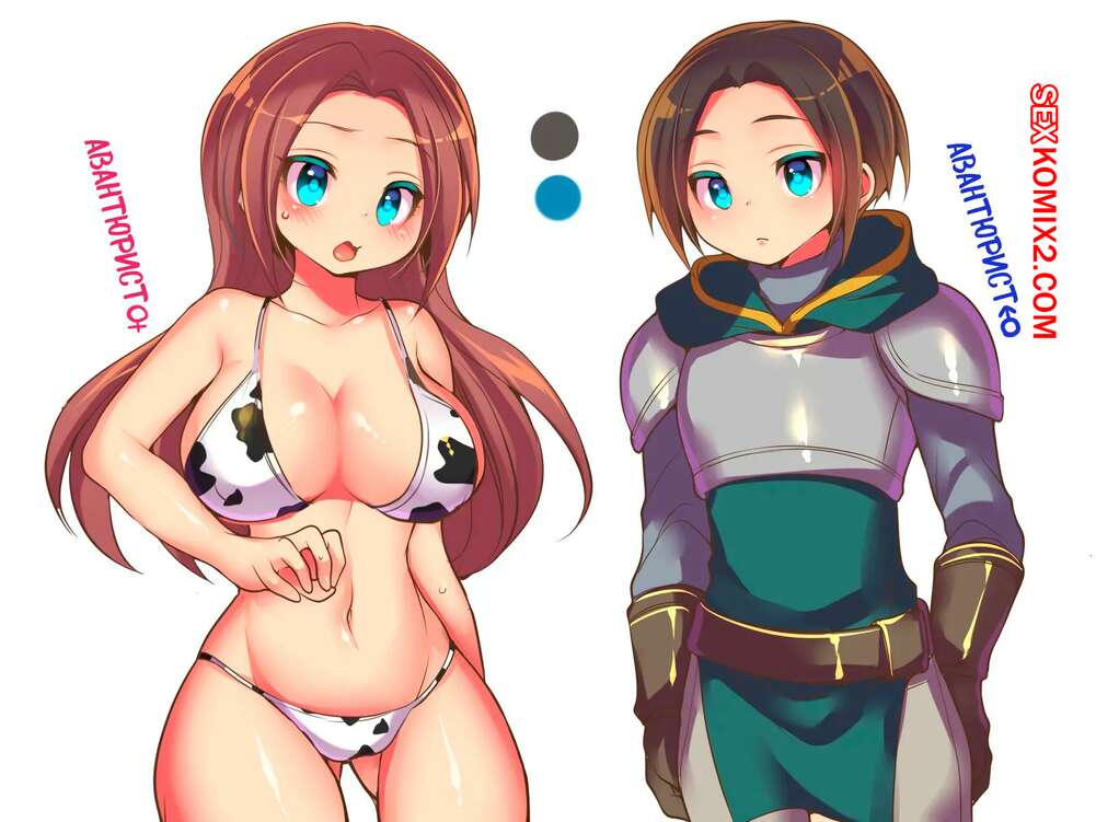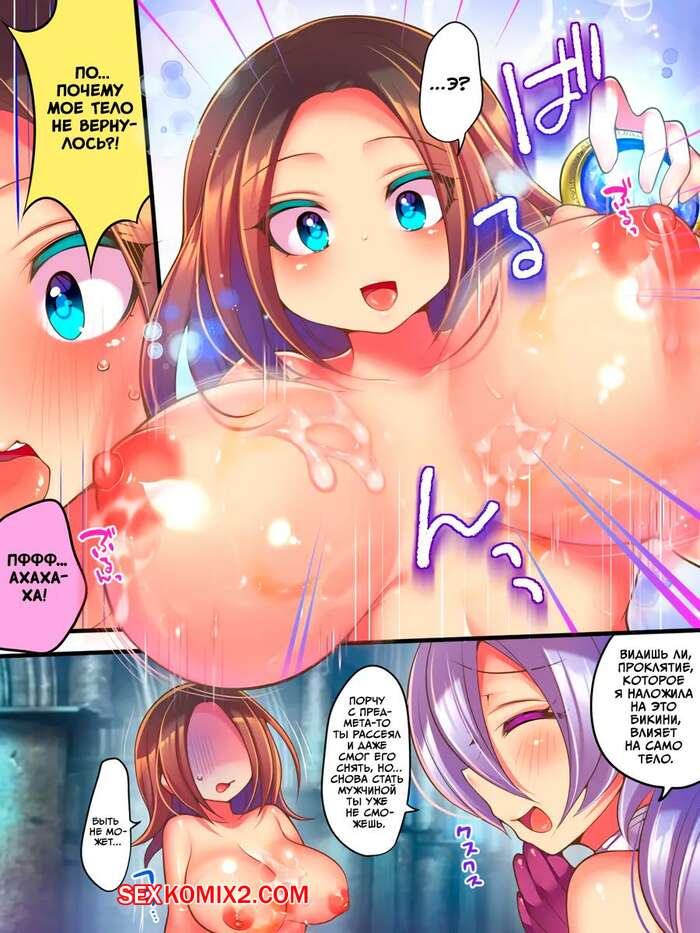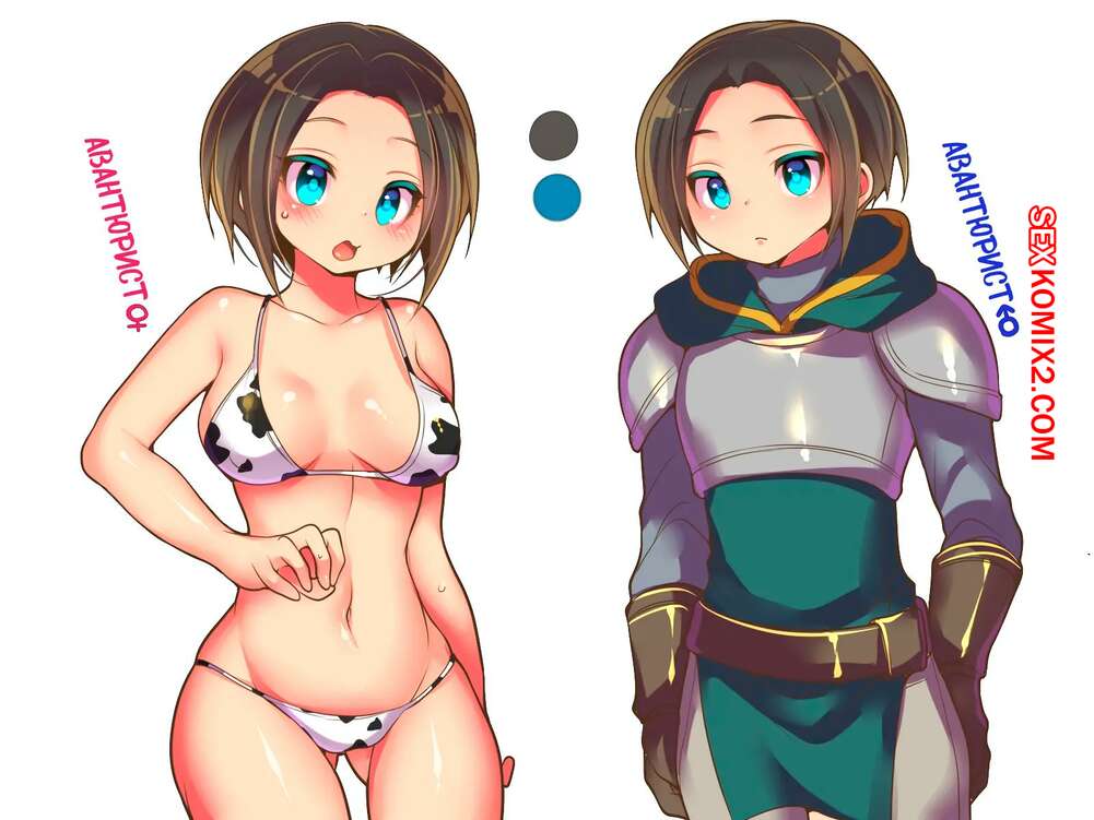 Порно комикс Проклятая экипировка. Деградация авантюриста до шлюшки в бикини. HNZM Молодой парень превратился в сексуальную брюнетку, которая встретила горячую блондиночку. Она решила повеселиться с новой знакомой и стала ласкать ее пизденку, доставляя брюнеточке удовольствие.