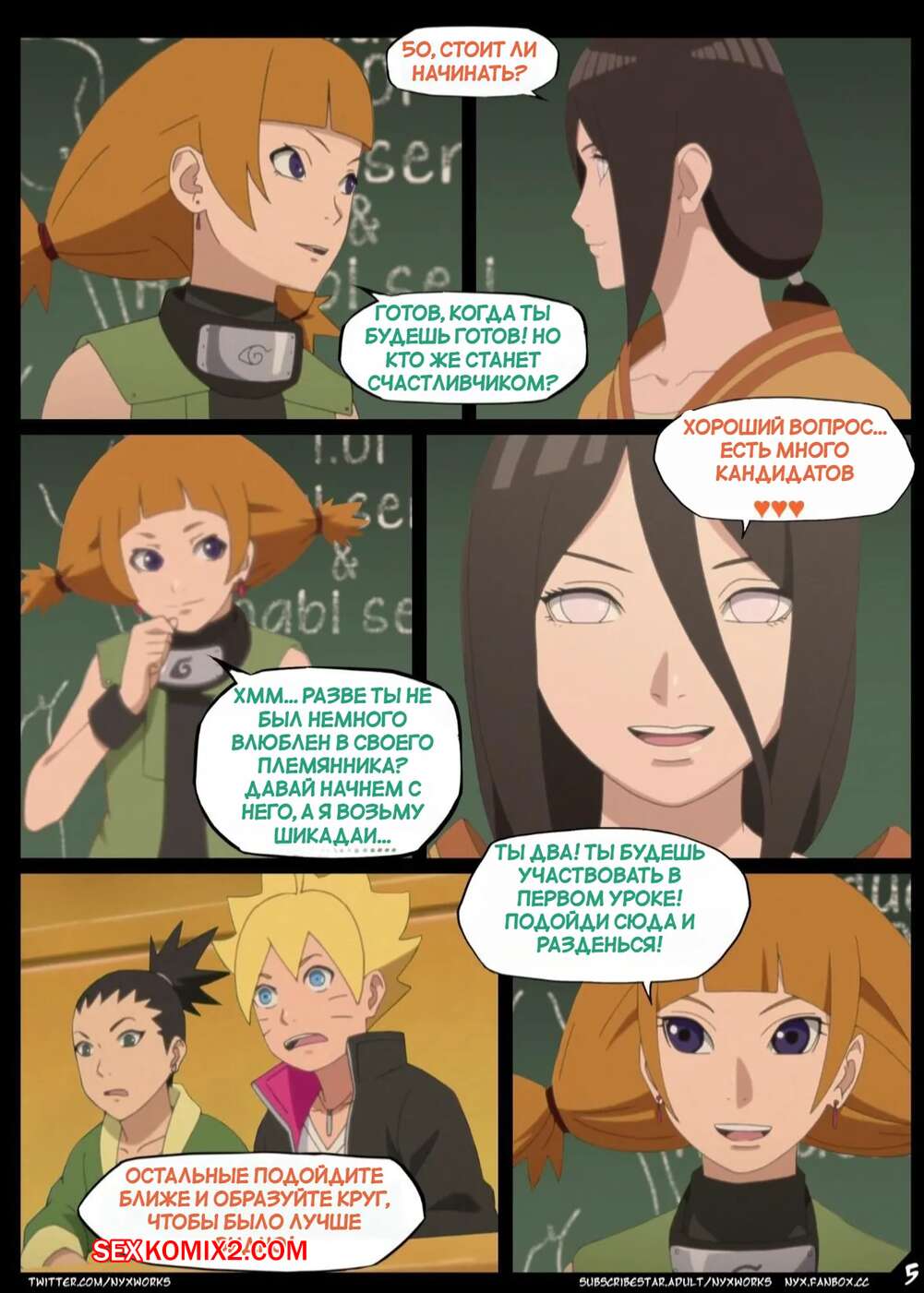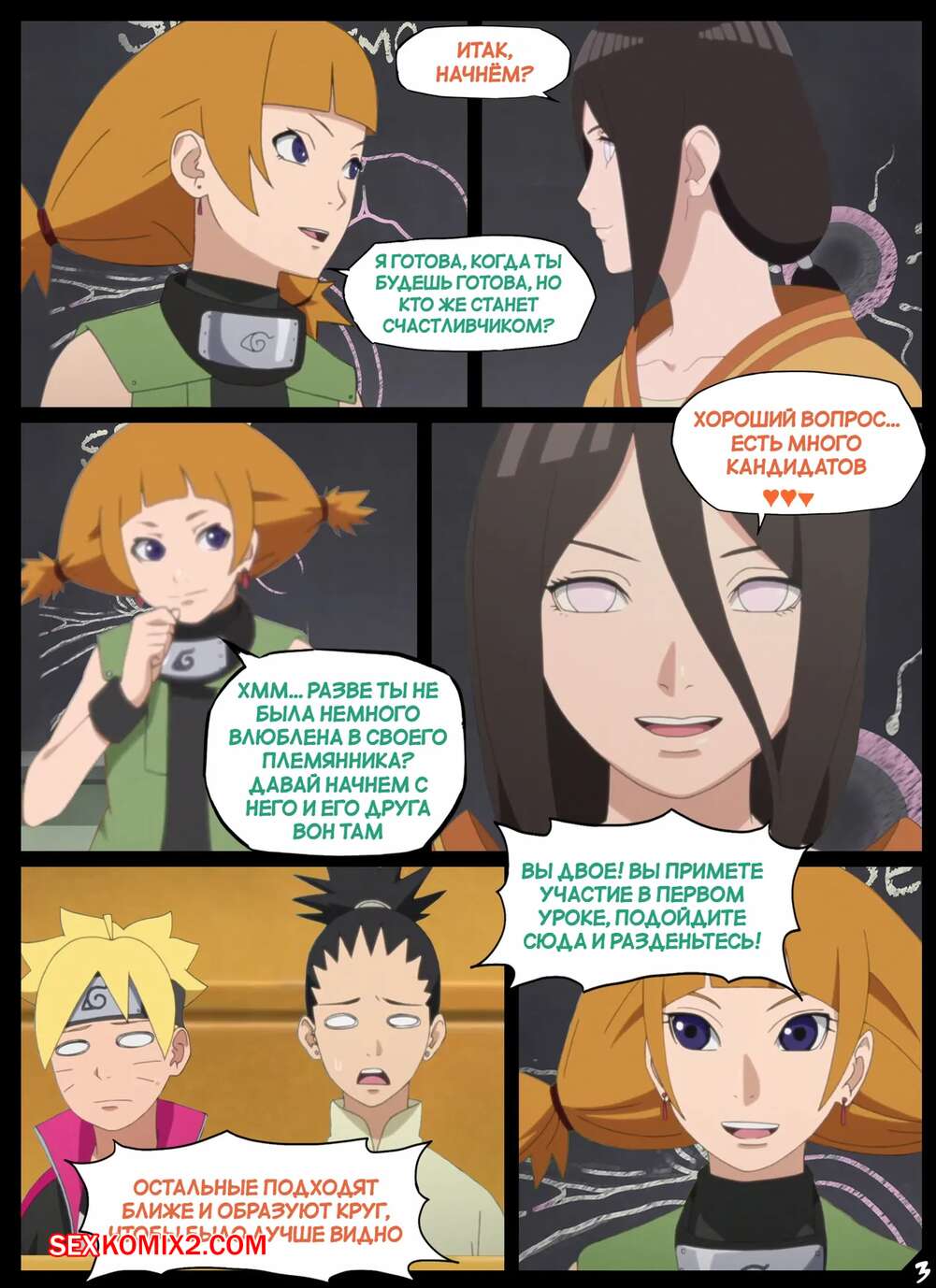 Порно комикс Наруто. Секс образование Куноичи. Kunoichi sex education. Nyx. Ханаби Сан со своей подругой решила провести урок секс образования для своих учеников. Две девушки выбрали добровольцев, после чего разделись перед всем классом и приступили к урокам.