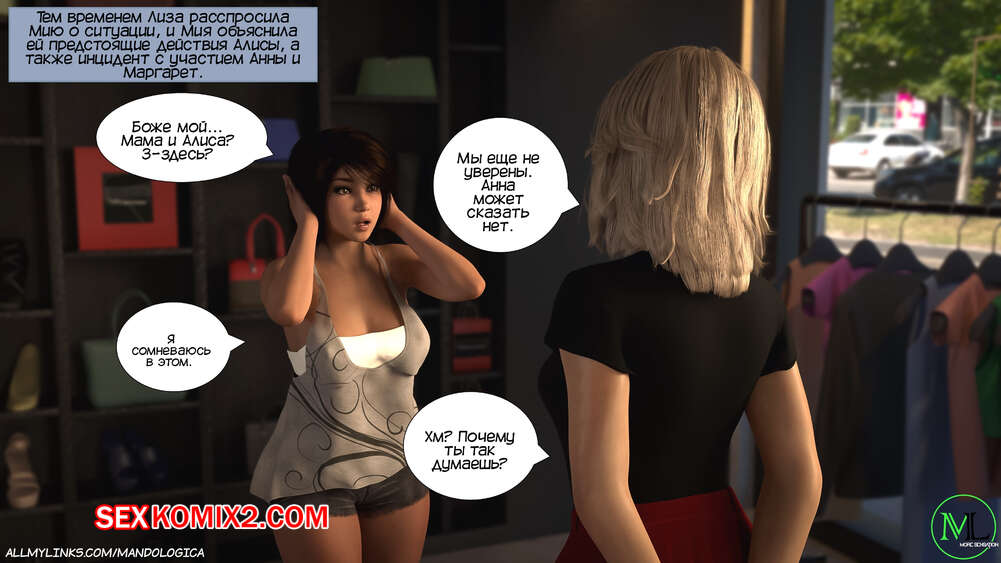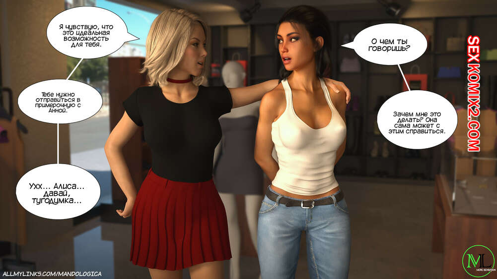 Порно комикс Только для тебя. Часть 40. Just For You. MandoLogica Девушки отправились в магазин одежды с утра пораньше. Мия стала подбивать Алису остаться наедине со своей горячей мамой в примерочной. Брюнеточка сперва сопротивлялась, но не устояла перед напором Мии.