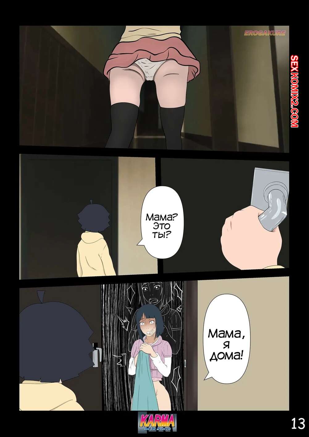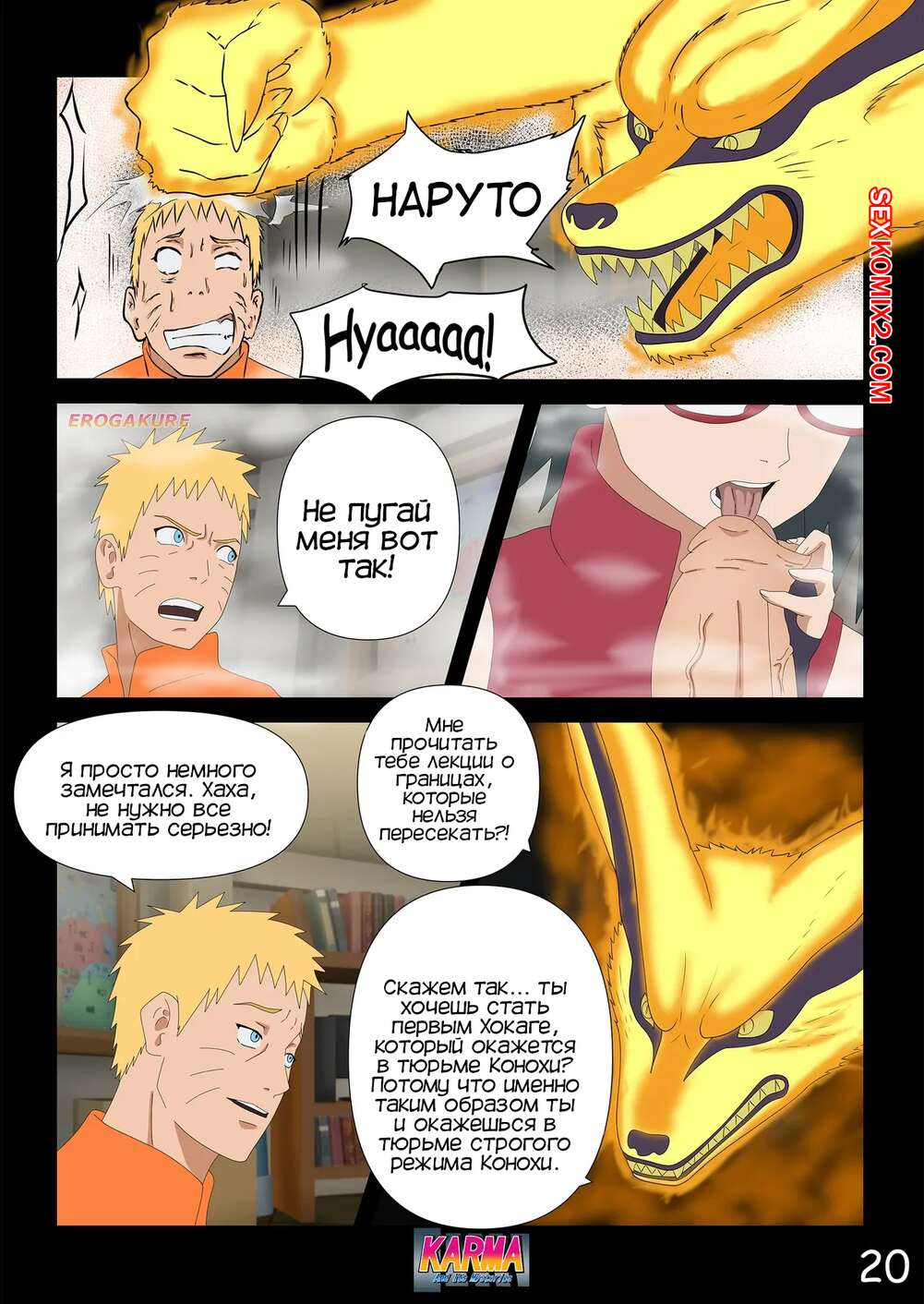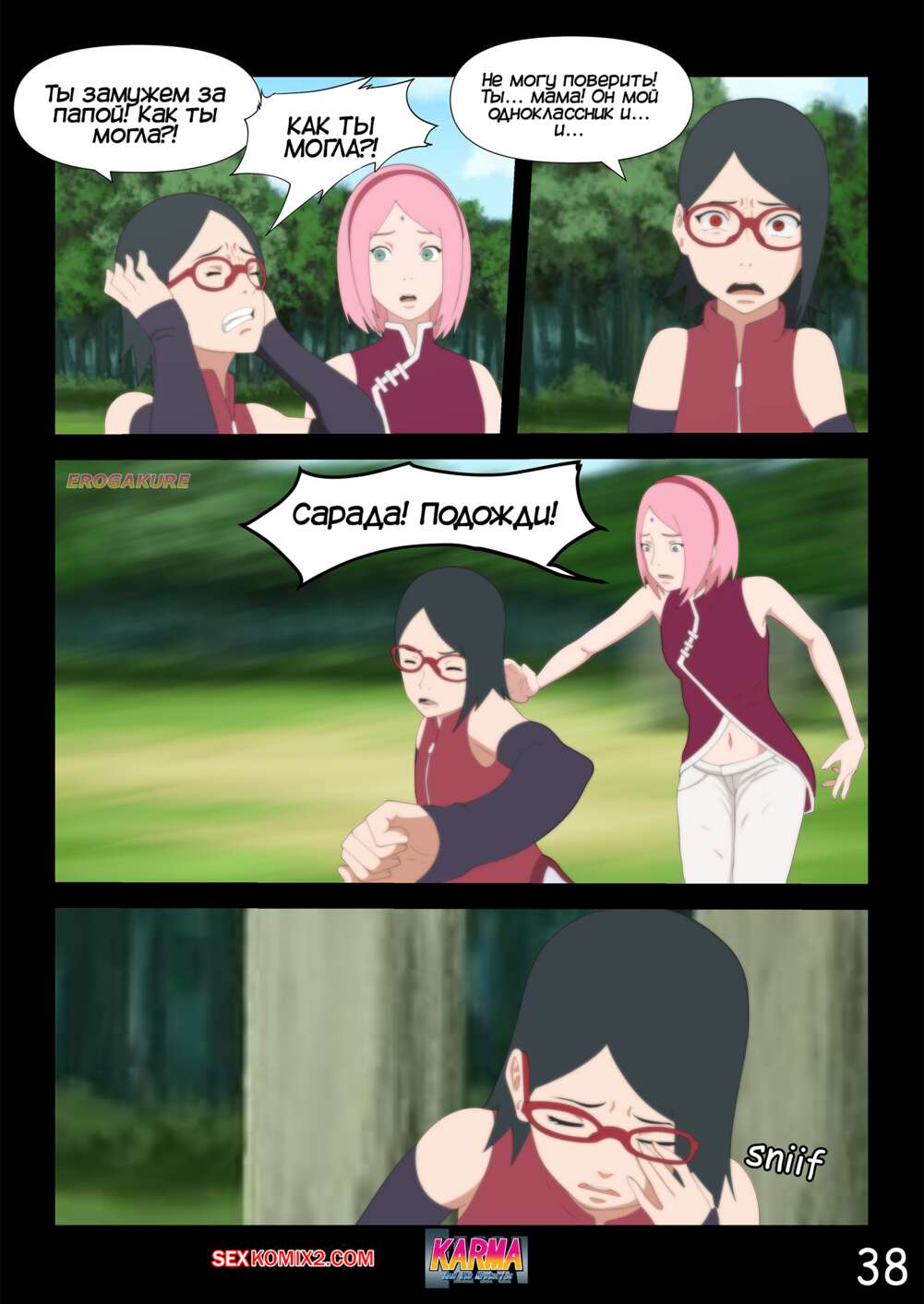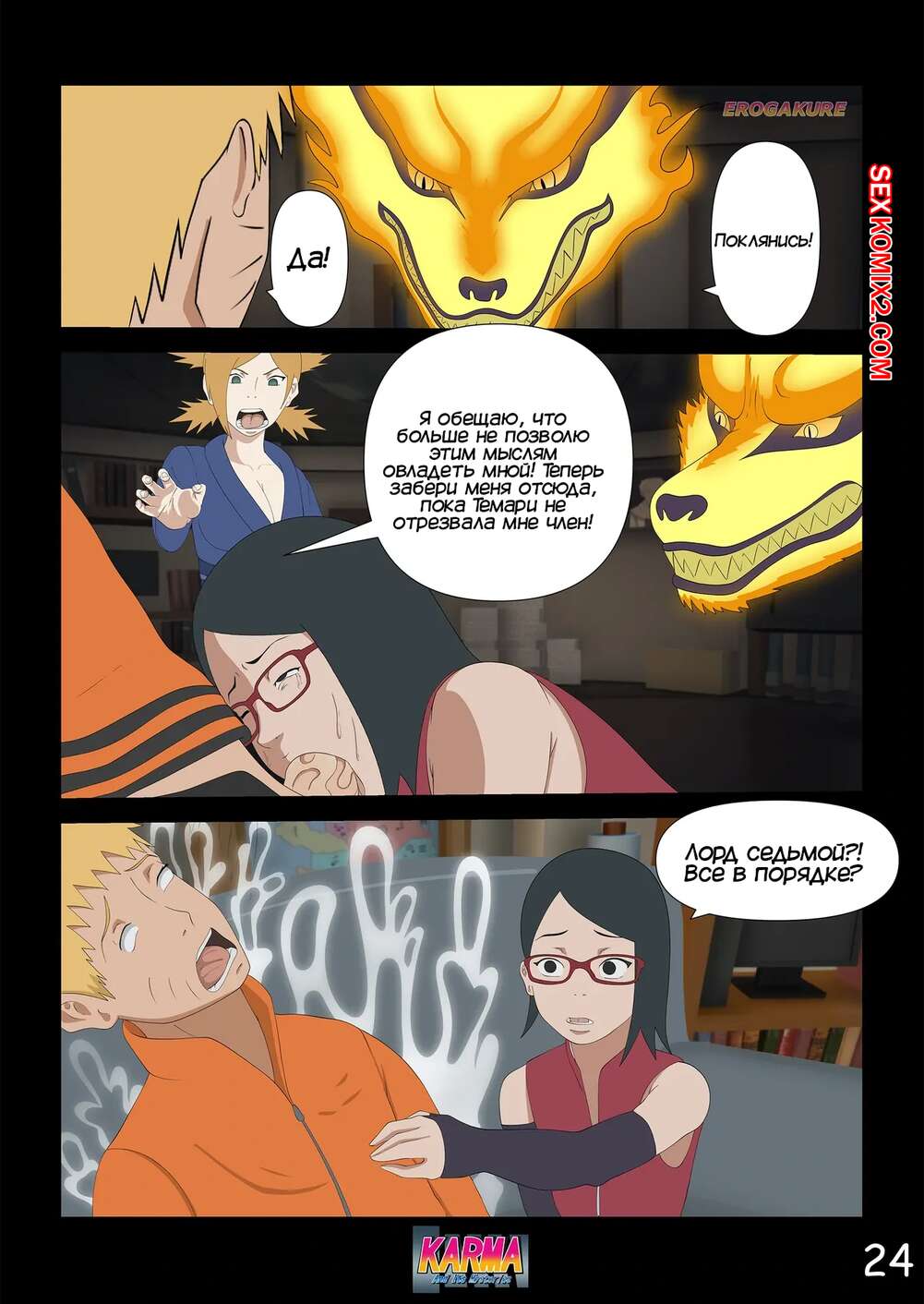 Порно комикс Боруто. Карма и ее тайны. Часть 3. Karma And Its Mysteries Боруто очнулся в больнице и ждет, что его навестит мама, но она никак к нему не идет. Красотка осталась дома одна с Каваки и дала ему выебать свою задницу, после чего сынок заполнил попку мамочки.