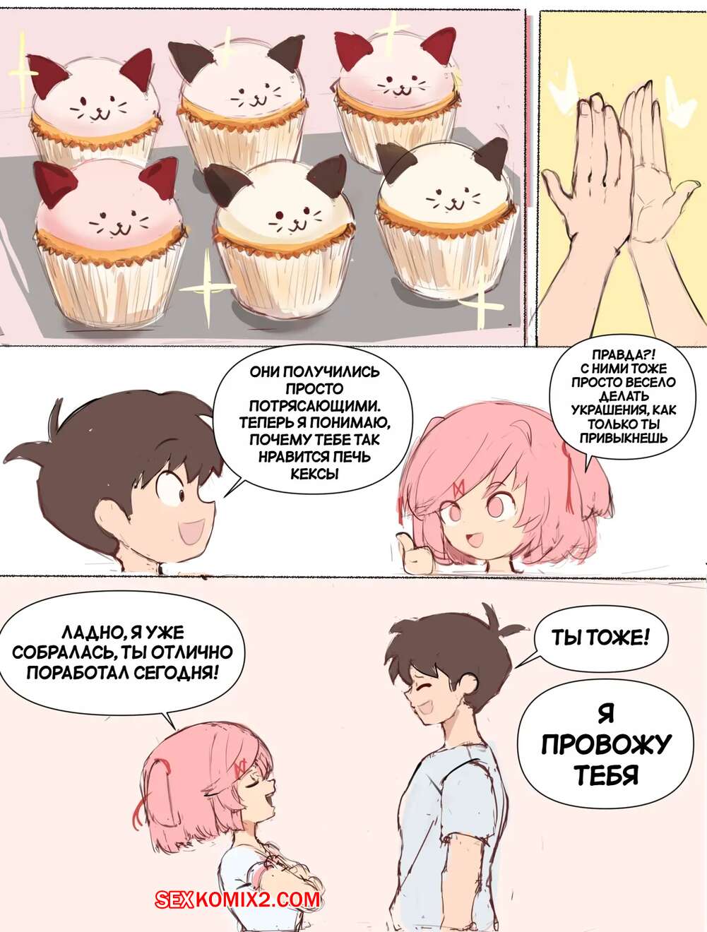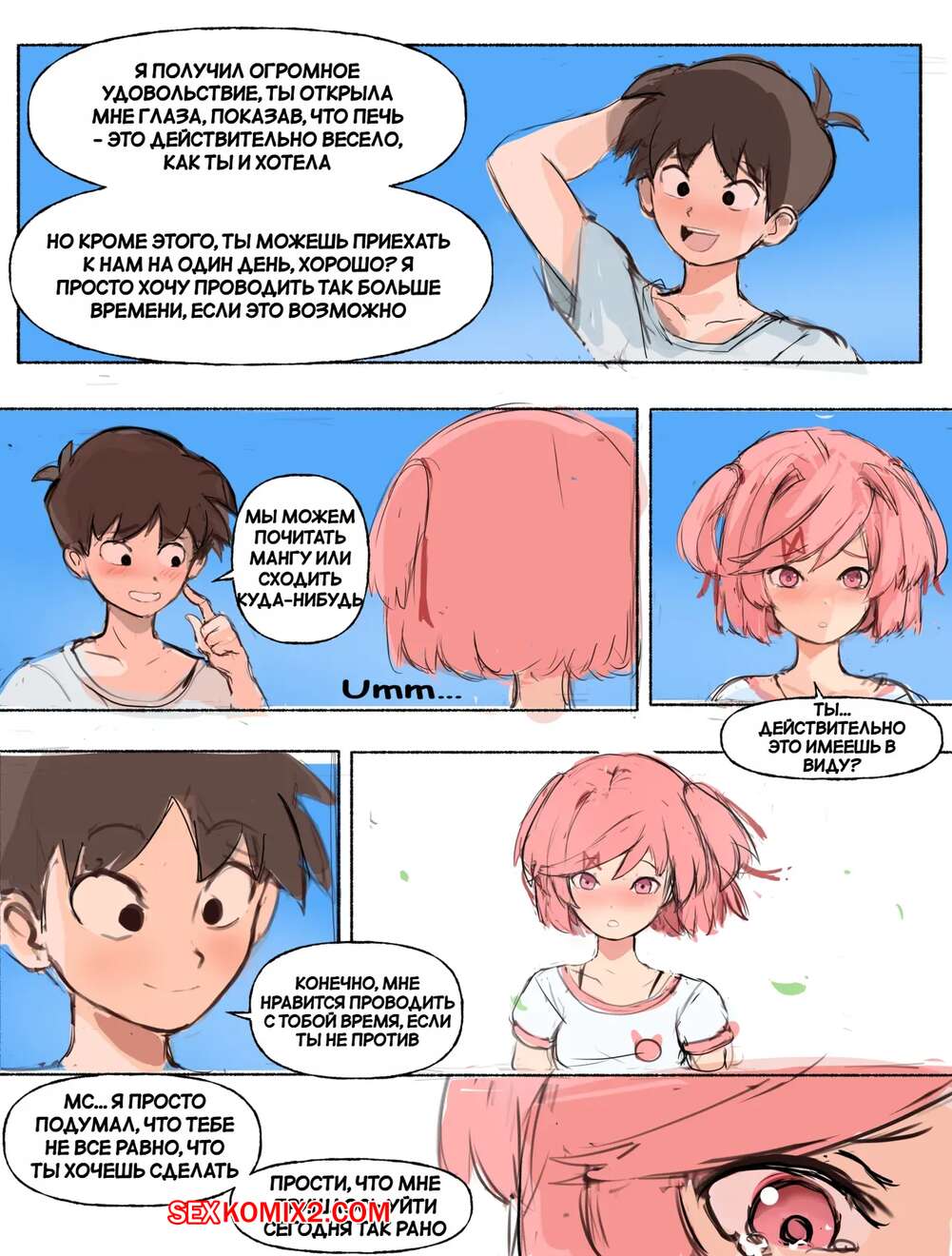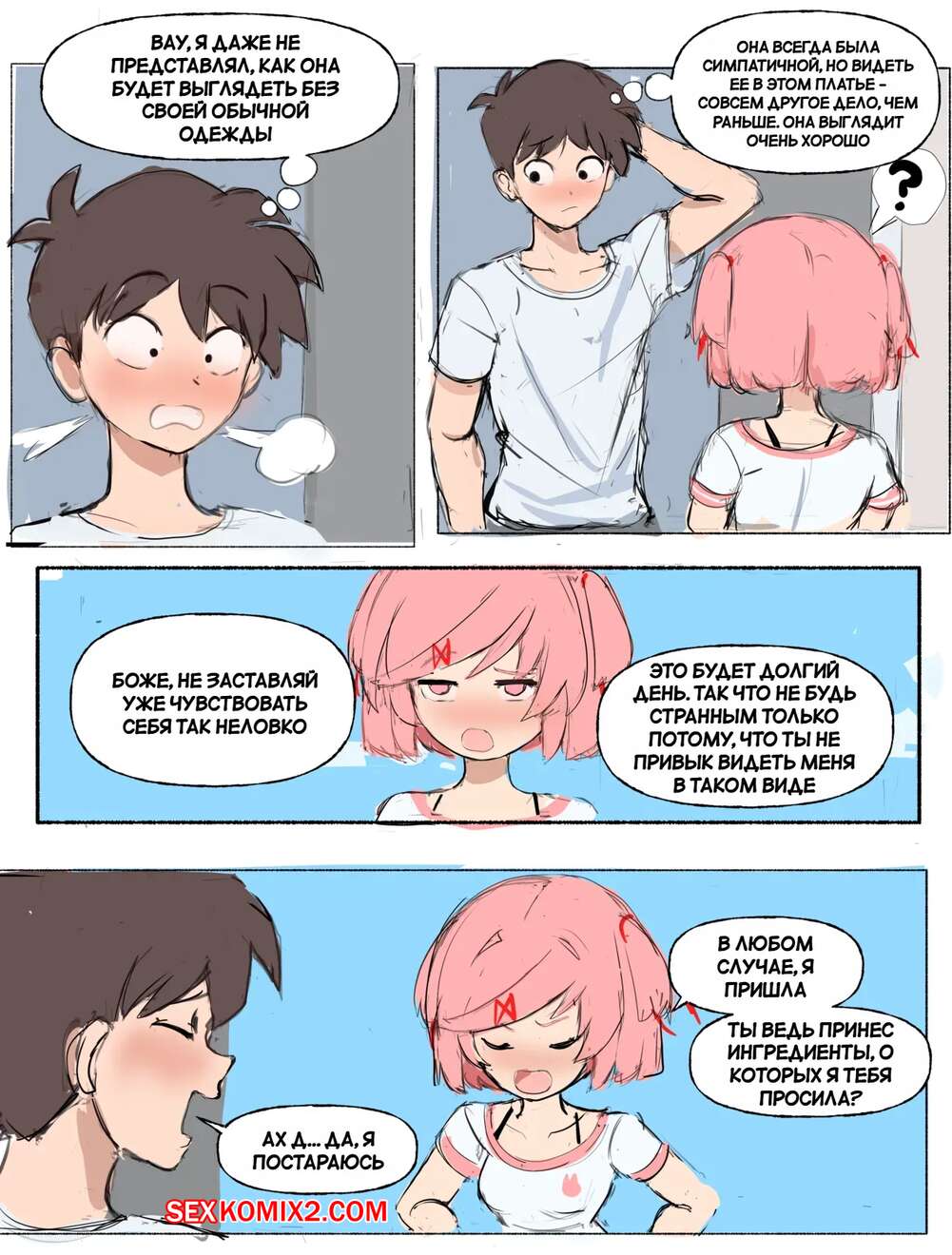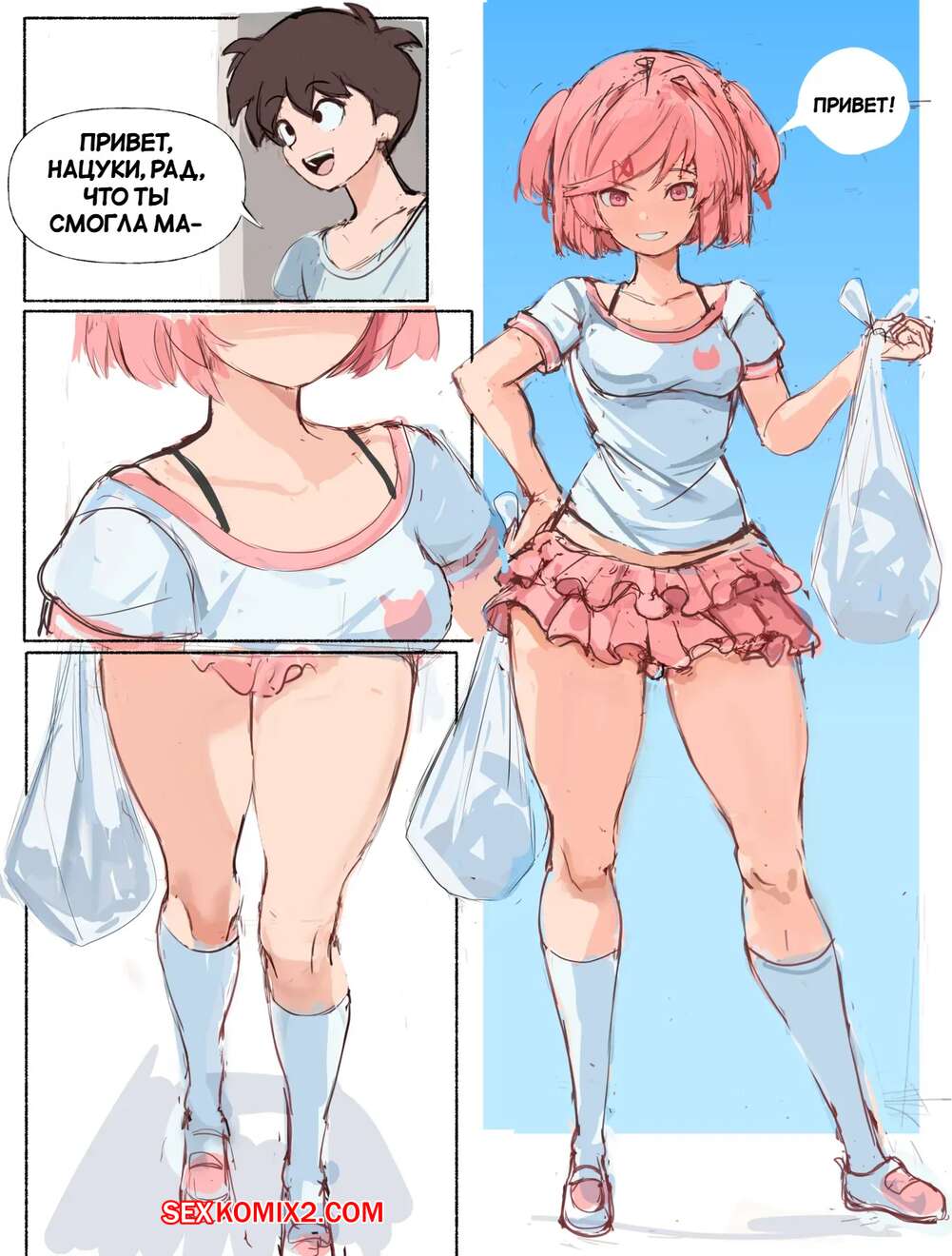 Порно комикс Поиграй со мной. Часть 2. Play with me. Ddoki doki literature club Горячая красотка пришла домой к своему дружку и стала его соблазнять. Девушка встала на колени и отсосала хуй парня, после чего дала ему выебать свою пизденку.