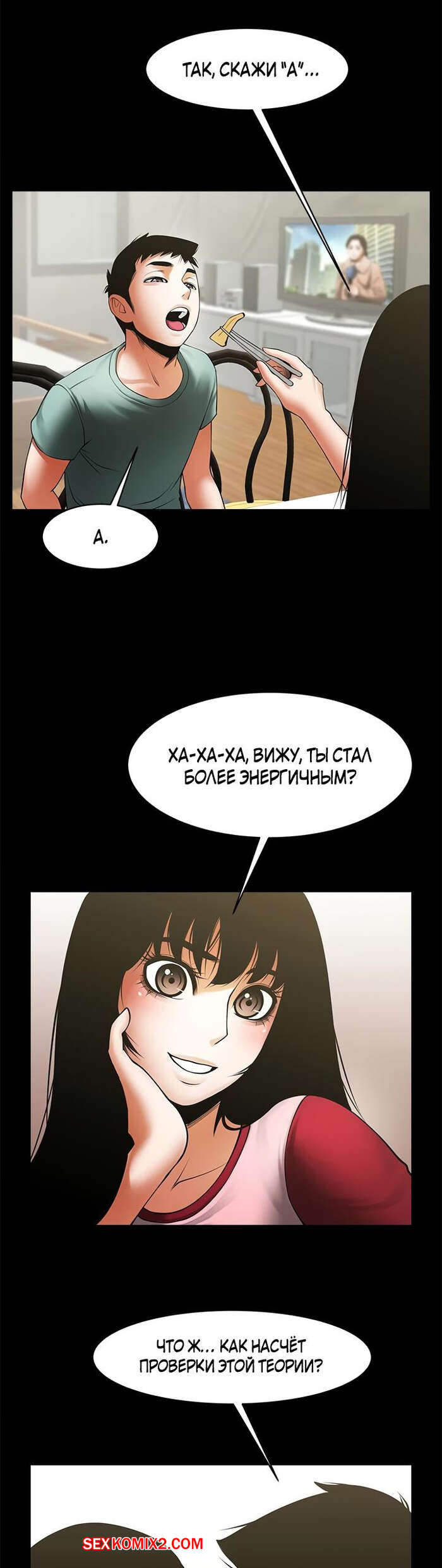 Порно комикс Обмен девушкой. Часть 49 и 50. Финал. Share Girlfriend Горячая брюнетка разделась перед своим дружком и возбудила его шикарным телом. Красотка оседлала большой хуй парня и дала ему себя хорошенько выебать, получив огромное удовольствие.