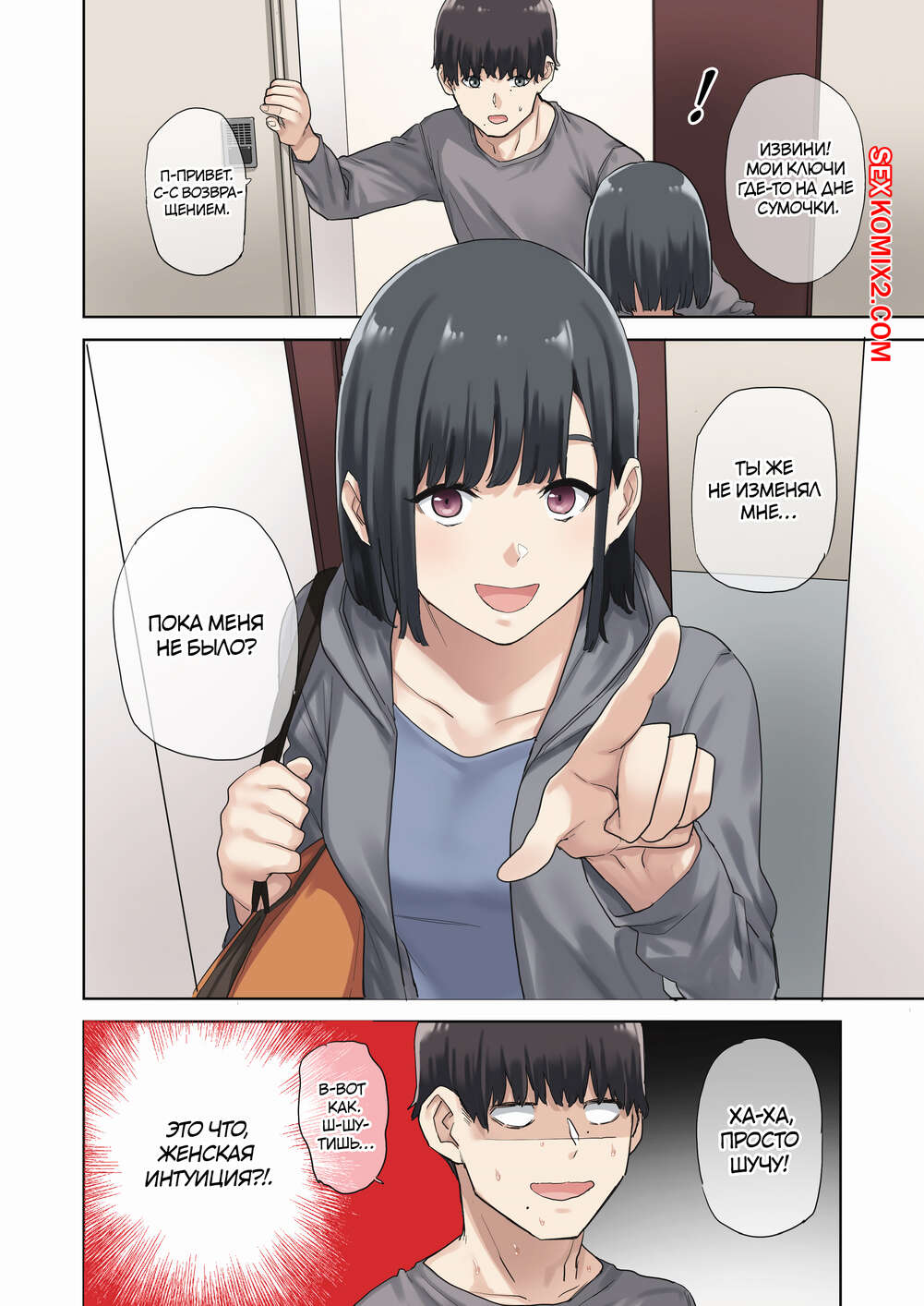 Порно комикс Я трахал подругу своей девушки, пока та была в отъезде. Shituzhi Горячая брюнетка влюблена в парня своей подруги. Она решила воспользоваться тем, что подруга уехала на время, и призналась парню в своих чувствах. Они оба не смогли сдержаться и занялись сексом.