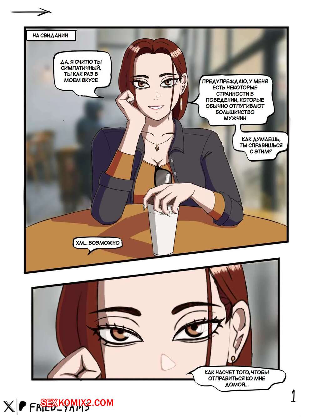 Порно комикс Встреча с интересной женщиной. Met an interesting woman. Sweetpotat0 Молодой парень отправился на свидание с горячей милфой. Она любит девственников, поэтому пригласила его к себе домой, где оседлала хуй парня и дала себя трахнуть.