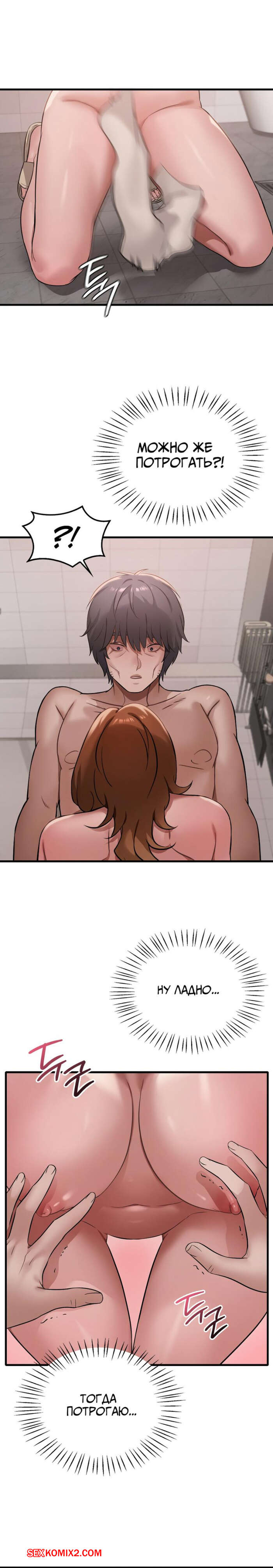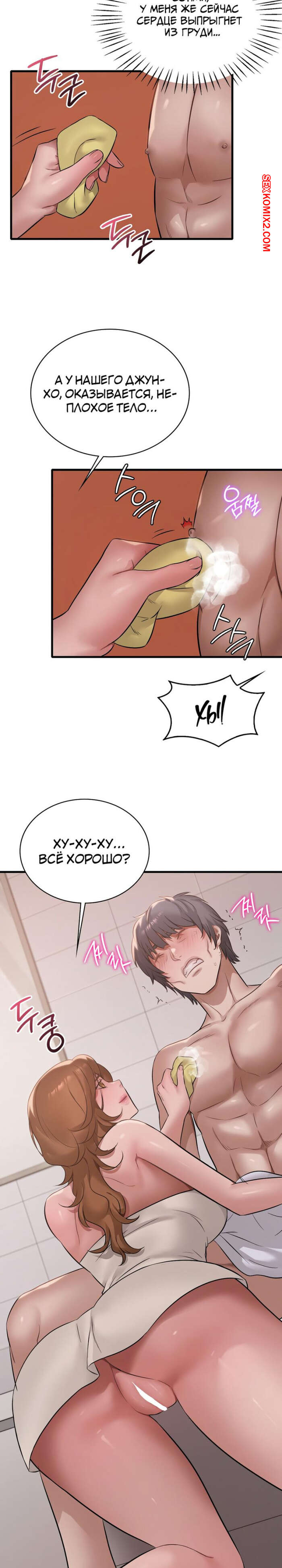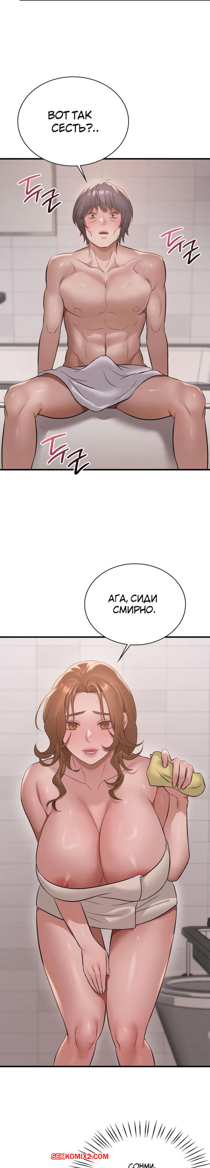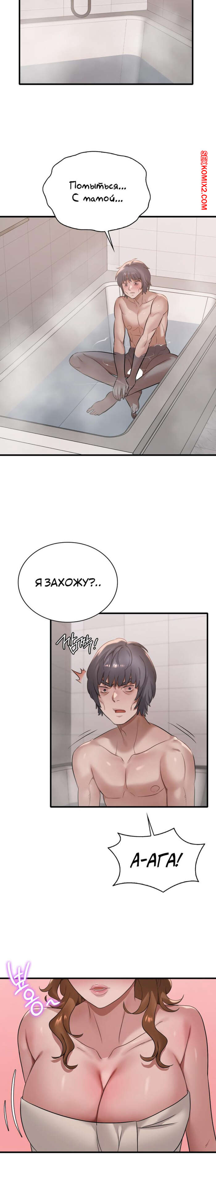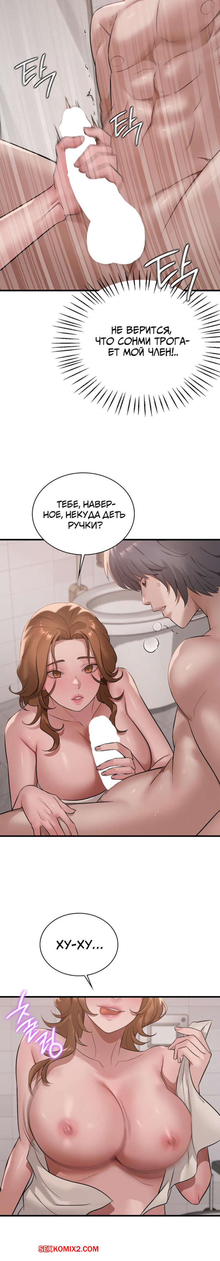 Порно комикс Она хочет опьянеть. Часть 87 и 88. cuhago sipeun gnher Парень пошел искупаться и к нему в ванну пришла сексуальная брюнетка в одном полотенце. Красотка осталась голой перед парнем, после чего стала дрочить его большой хуй.