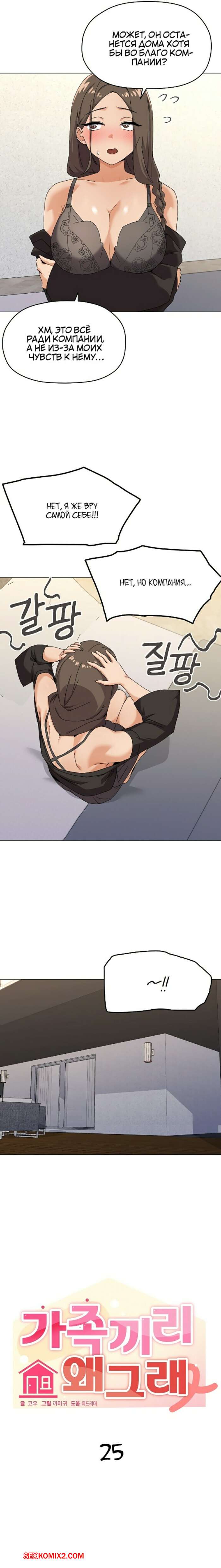 Порно комикс Что не так с этой семьей. Часть 25 и 26 и 27. gajogkkili wae geulae Горячая брюнетка была очень возбуждена и хотела трахаться. Она надела сексуальное белье и пригласила парня к себе в комнату, желая потрахаться, но все пошло не по плану..
