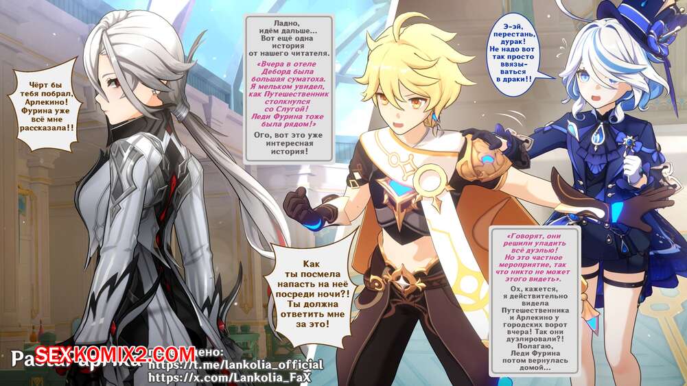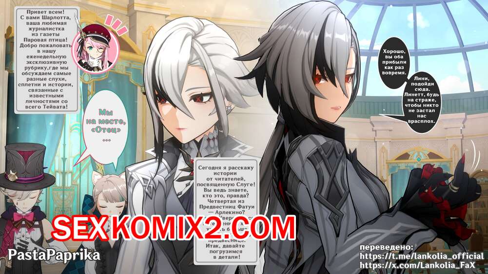 Порно комикс Genshin Impact. Arlecchino The Knave. PastaPaprika Горячая красотка Арлекино раздевается и соблазняет своих друзей и подруг шикарным телом. Девушка сосет большие хуи друзей, после чего дает им себя хорошенько выебать.