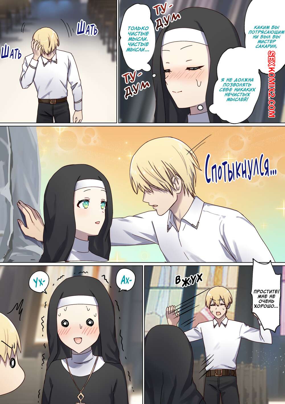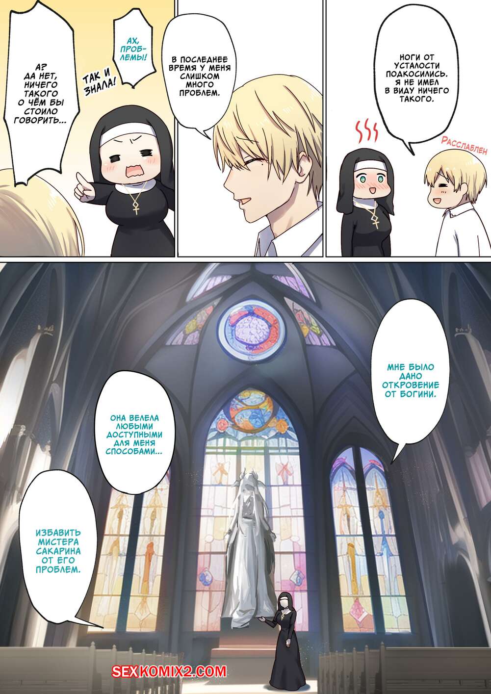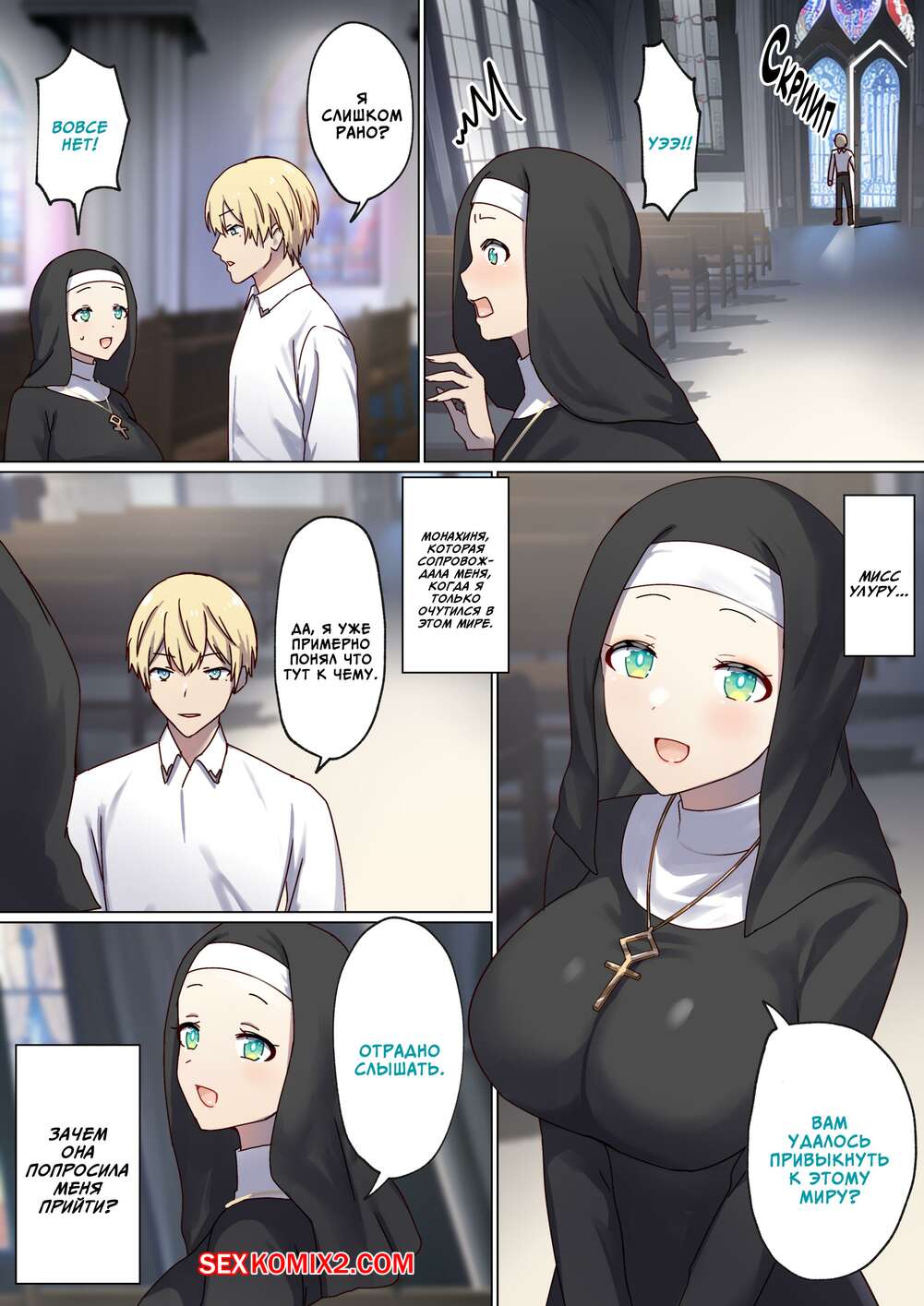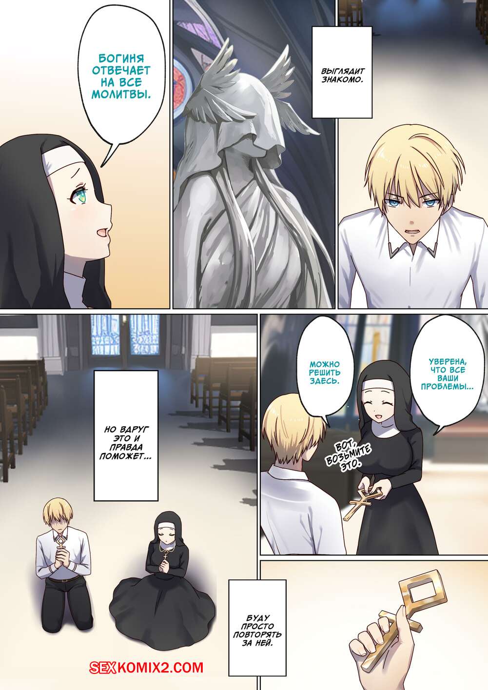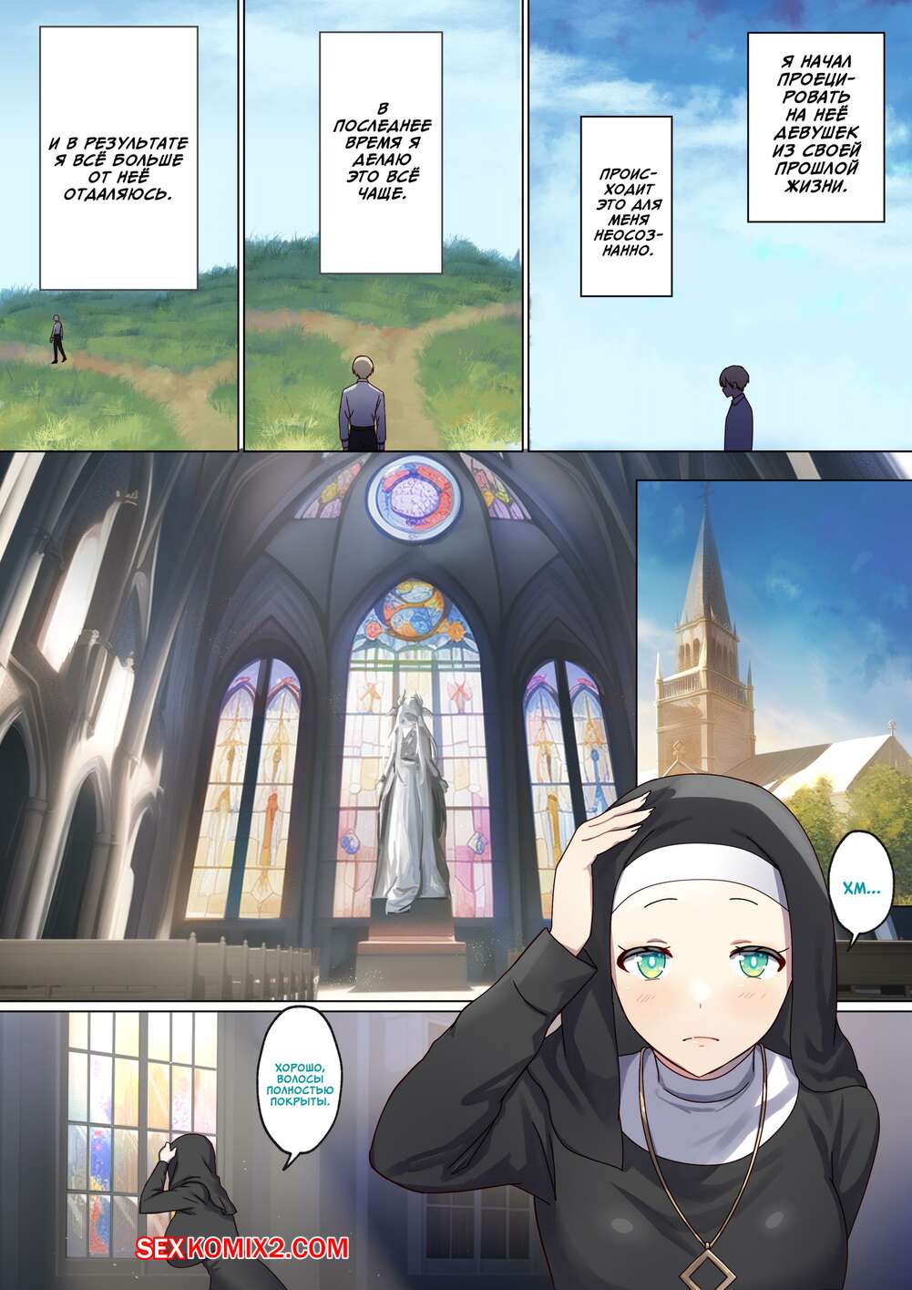 Порно комикс Следующая Жизнь СексГероя. Часть 3. Pochikin Горячая монашка была очень возбуждена и решила повеселиться с парнем. Они отправились в уединенное место и стали ласкать друг друга, после чего занялись страстной еблей.