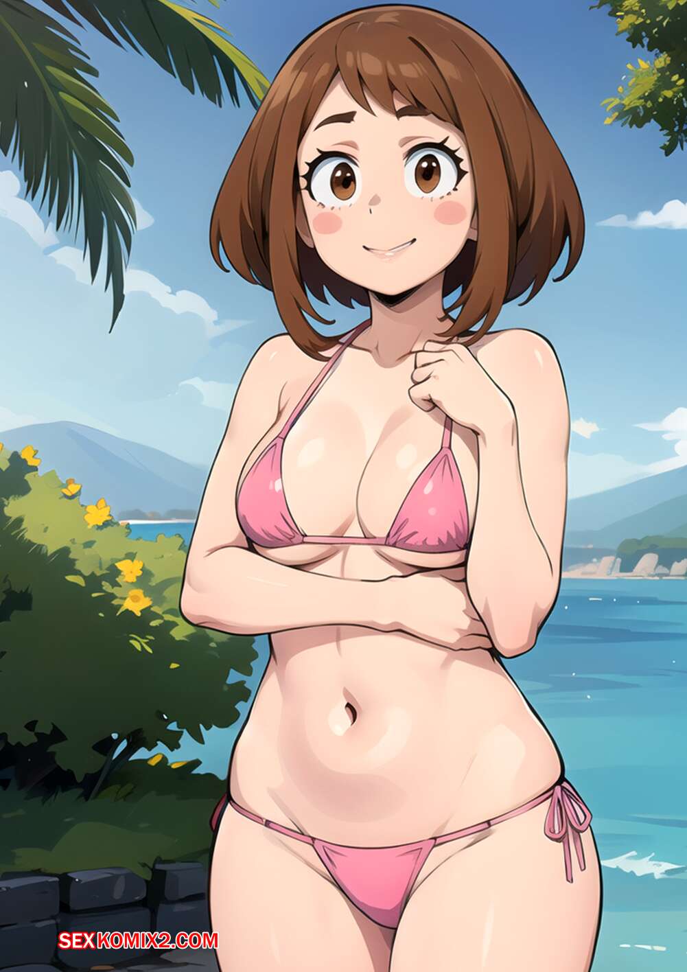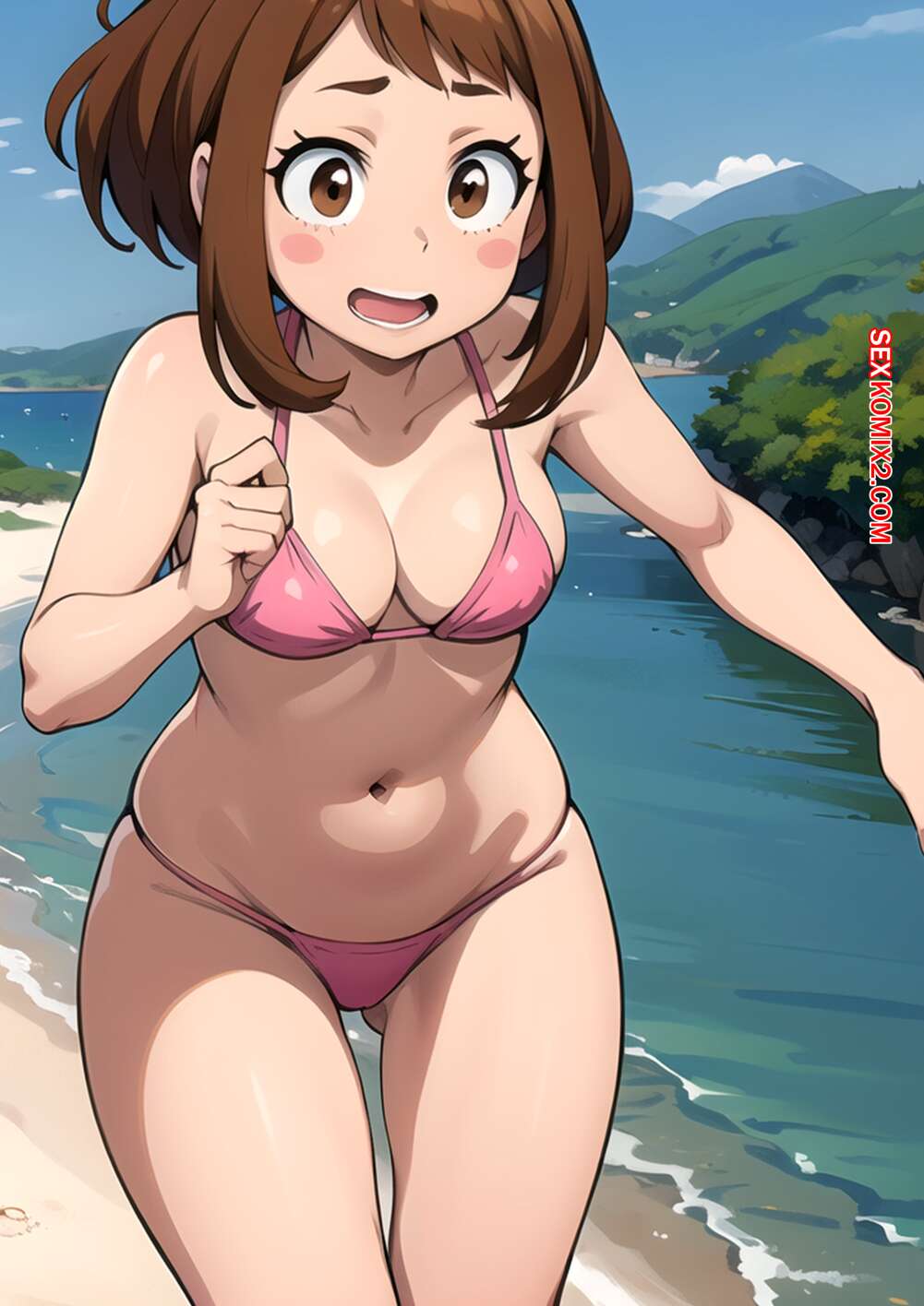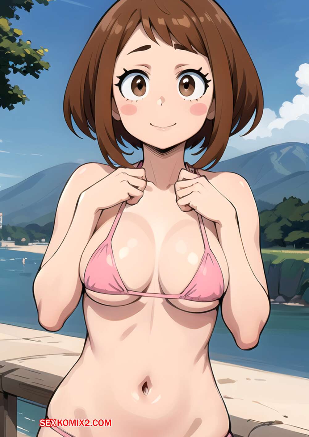 Порно комикс Ochako Uraraka. Kahoo Горячая брюнетка Очако была очень возбуждена и решила повеселиться со своим дружком. Она разделась и отсосала большой хуй парня, после чего дала ему себя выебать.