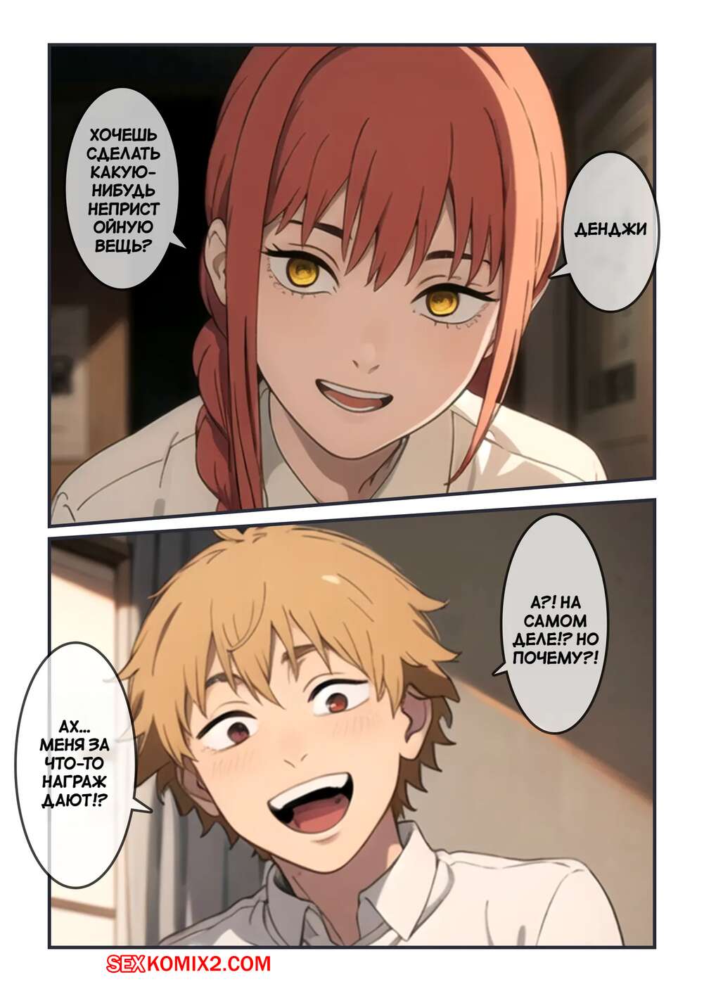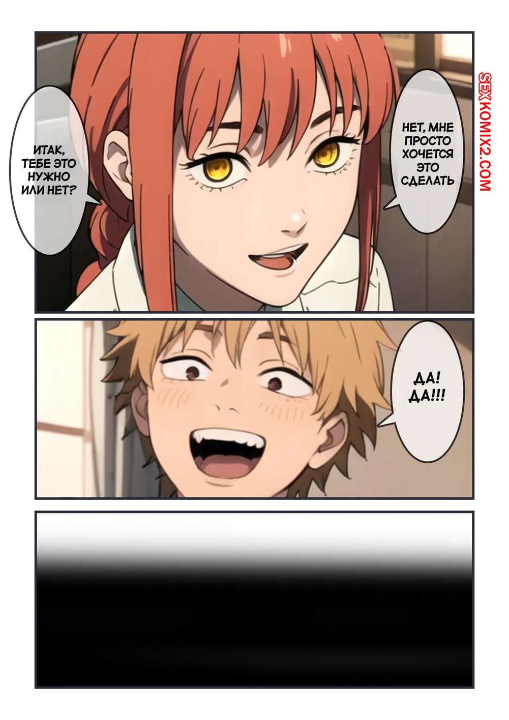 Порно комикс Chainsaw Man. Красивое тело Макимы. Makimas beautiful body. Kahoo Рыжая красотка Макима была очень возбуждена и решила повеселиться со своим дружком. Она разделась и возбудила парня шикарным телом, после чего дала ему себя хорошенько выебать.