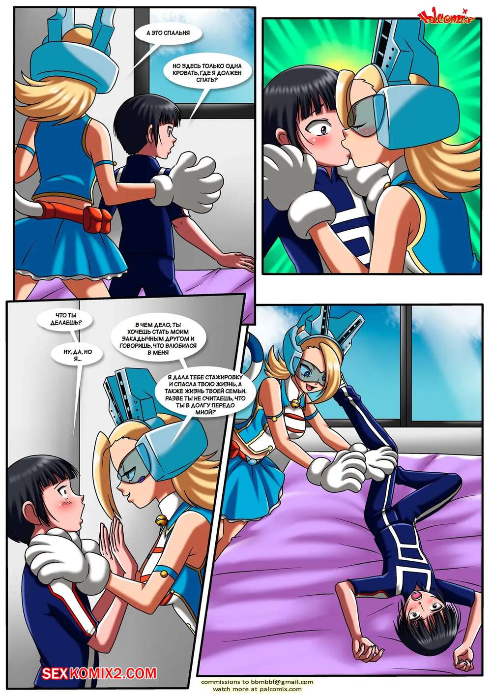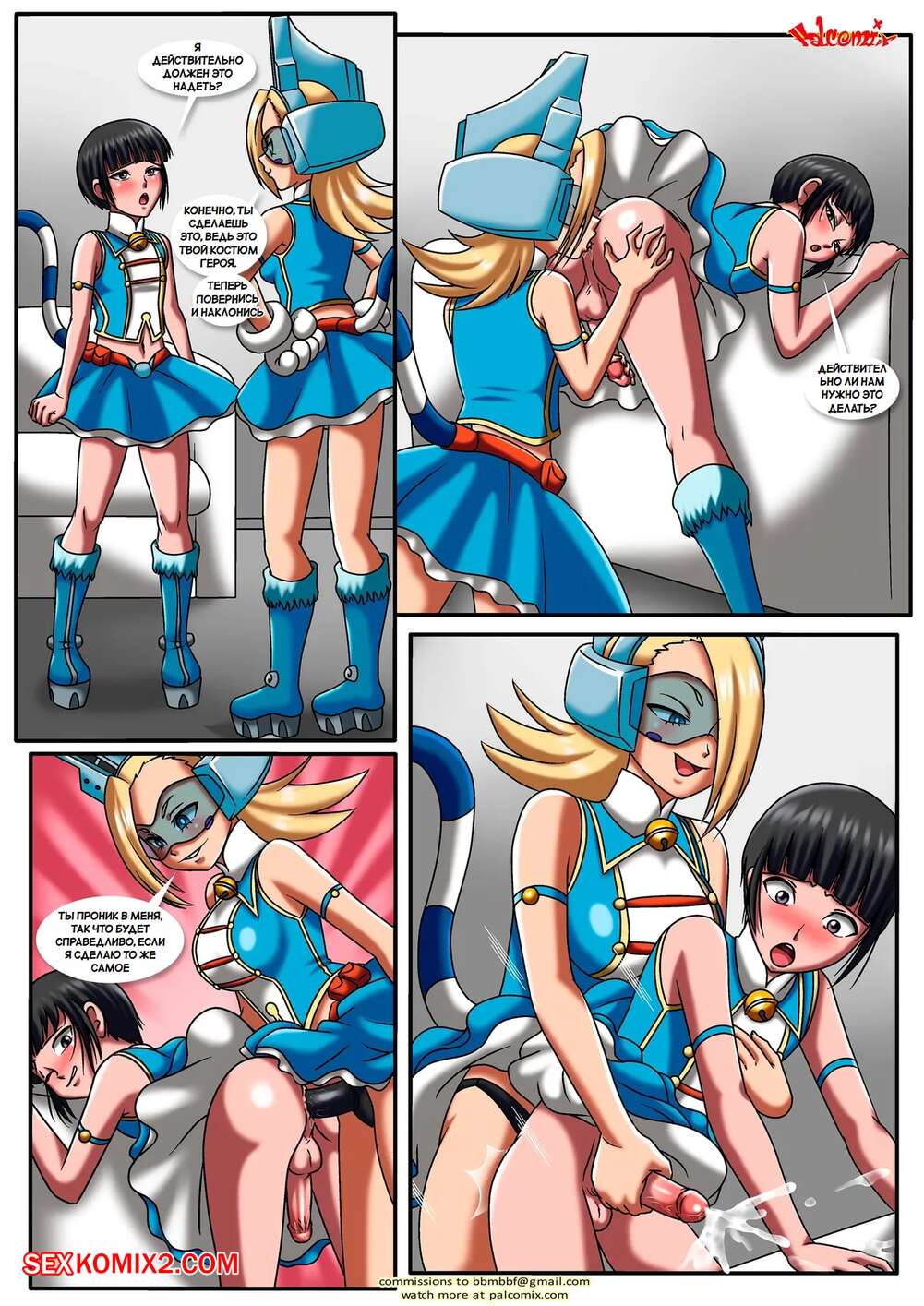Порно комикс Академия. Желания героев. Heros Desire. PalComix. Горячая блондиночка была очень возбуждена и решила повеселиться со своей подругой с большим хуем. Девушка отсосала хуй подруги, после чего дала ей себя как следует выебать.