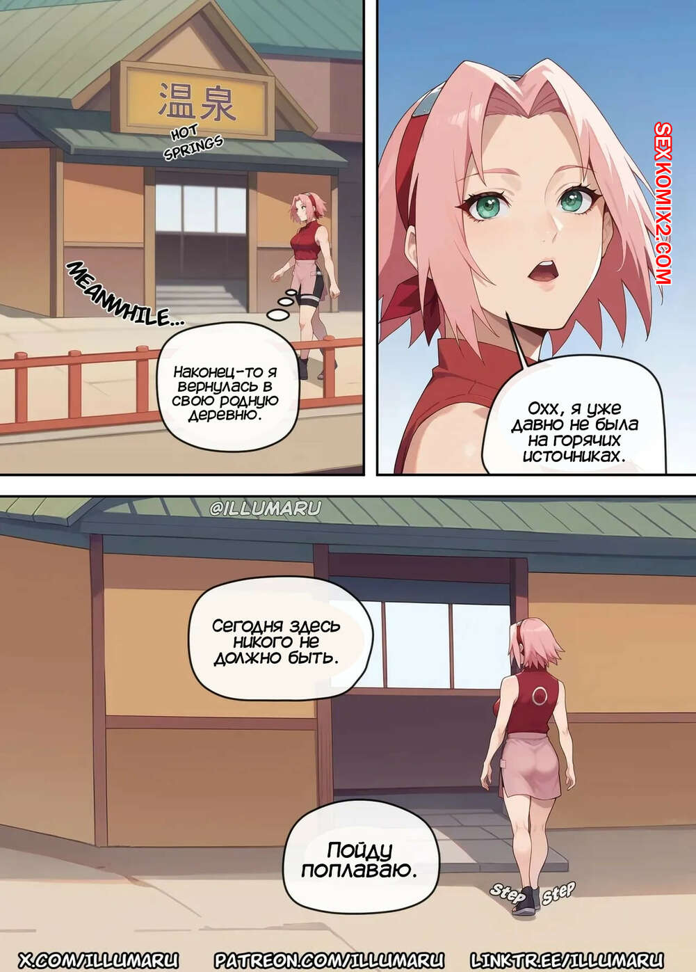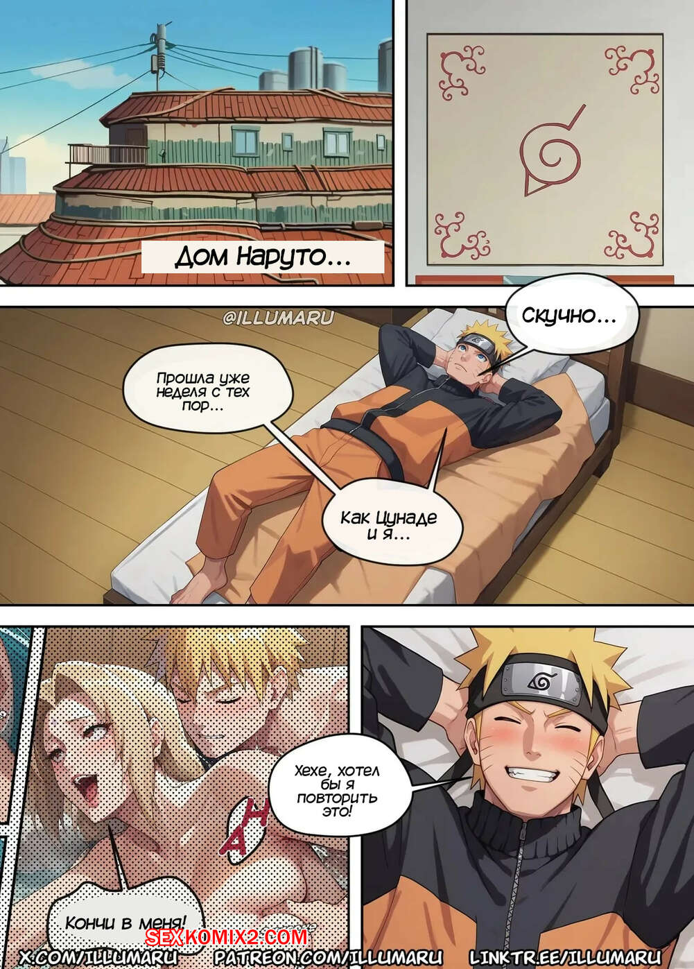 Порно комикс Наруто. Очень горячие источники. Часть 2.1 и 2.2. Very Hot Springs. Illumaru Наруто получил письмо от Цунаде с приглашением вновь повеселиться. Парень скорее поспешил на горячие источники, где застал Сакуру и Цунаде за лесбийской еблей.