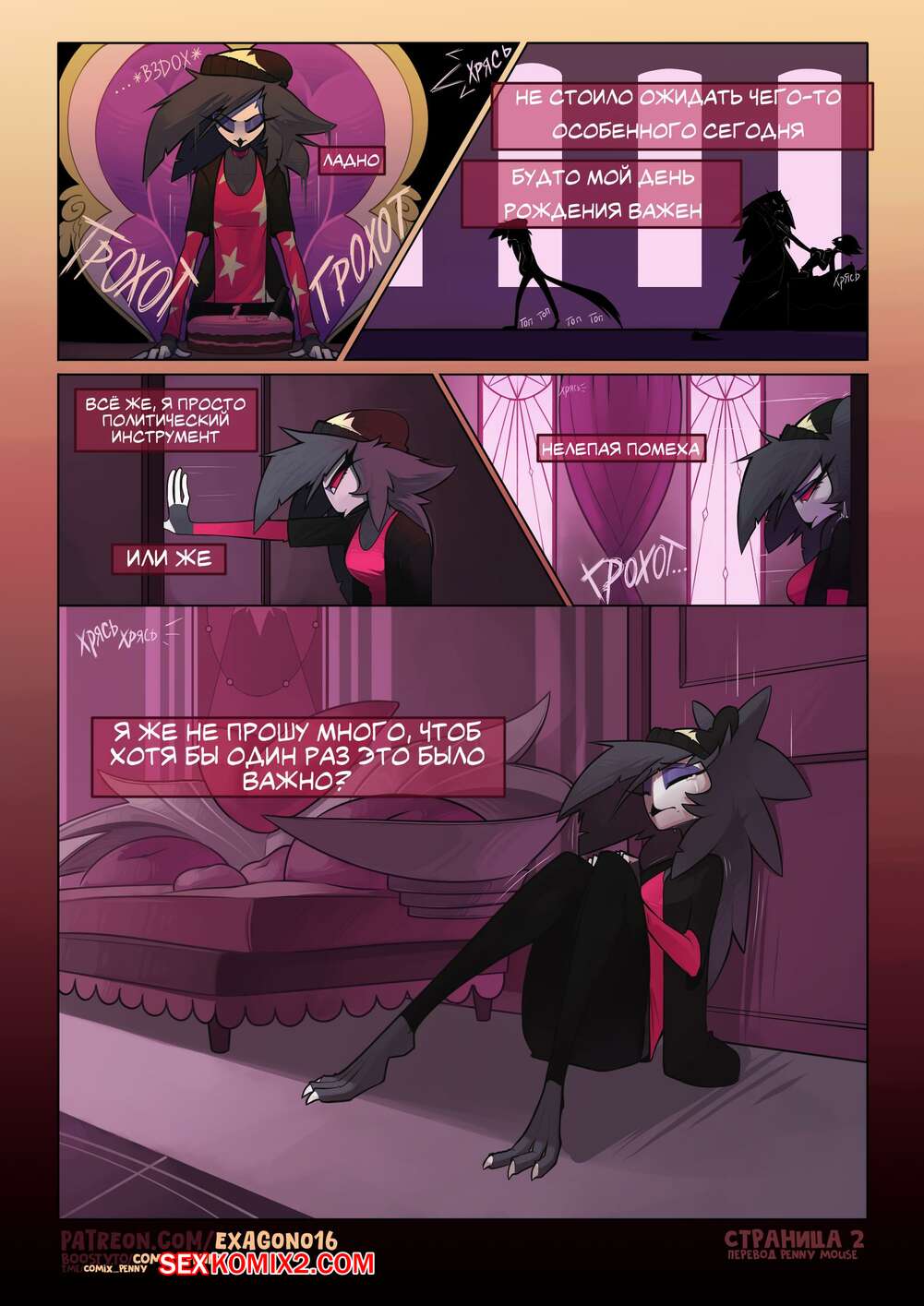 Порно комикс Helluva Boss. Сюрприз для Октавии на день рождения. Exagono16 Луна решил устроить сюрприз Октавии и разделась перед девушкой. Красотки сильно возбудились и стали ласкать друг дружку, получая от этого невероятное удовольствие.