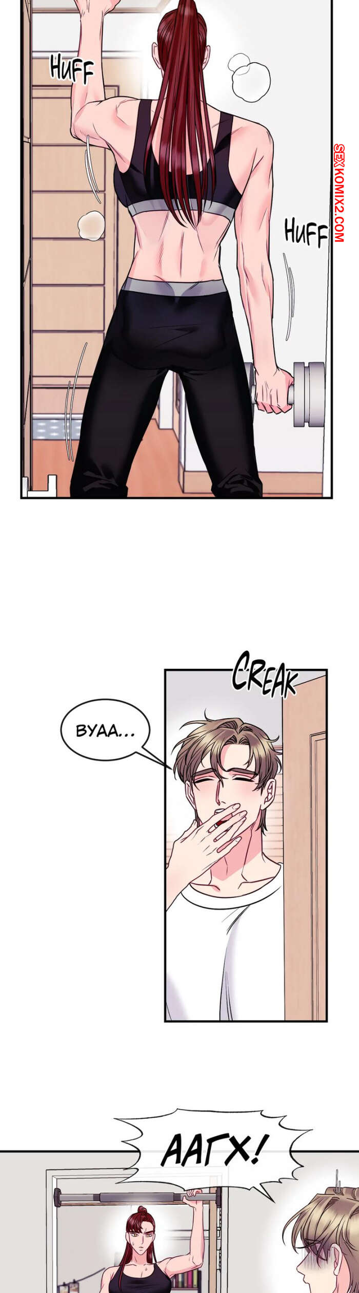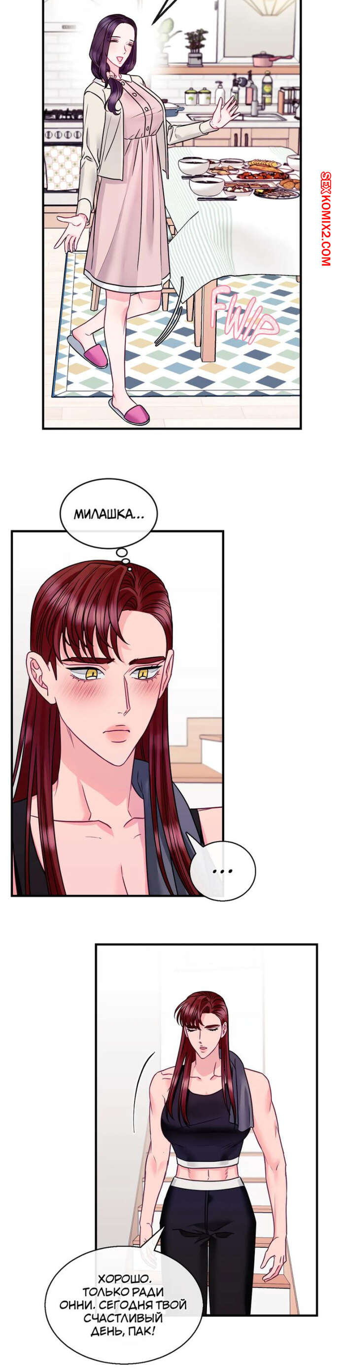 Порно комикс Дом любви. Часть 7 и 8 и 9. leobeu hauseu Горячая милфа была очень возбуждена и решила повеселиться с молодым парнем, который арендует у нее комнату. Красотка надела сексуальное белье и пригласила парня к себе, чтобы он ее хорошенько выебал.