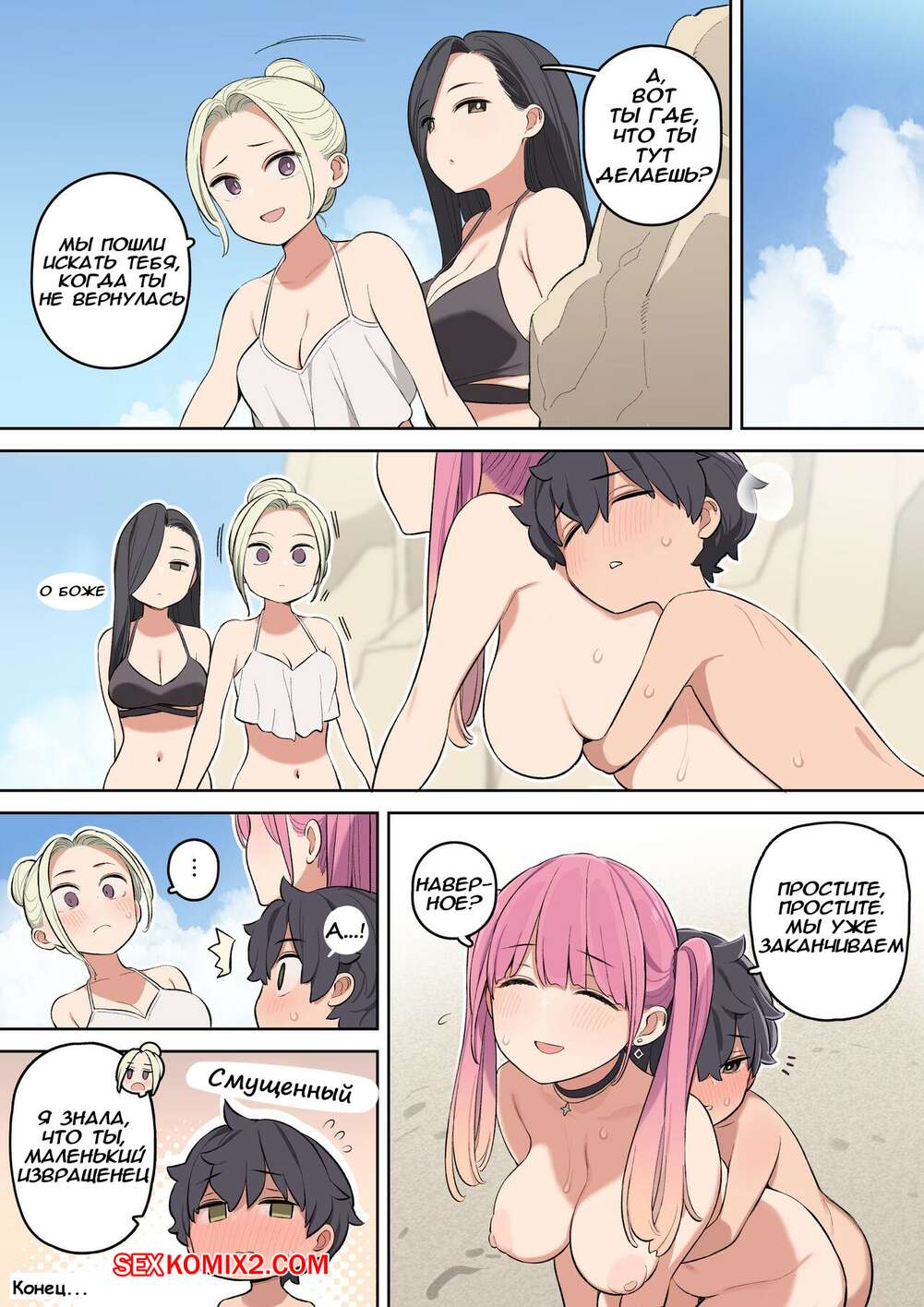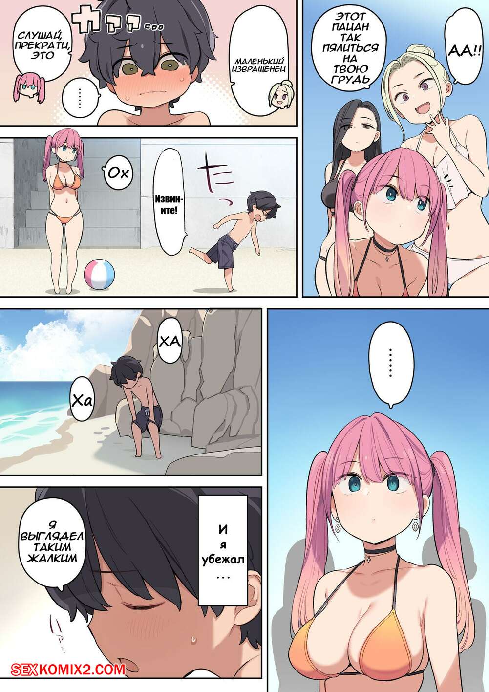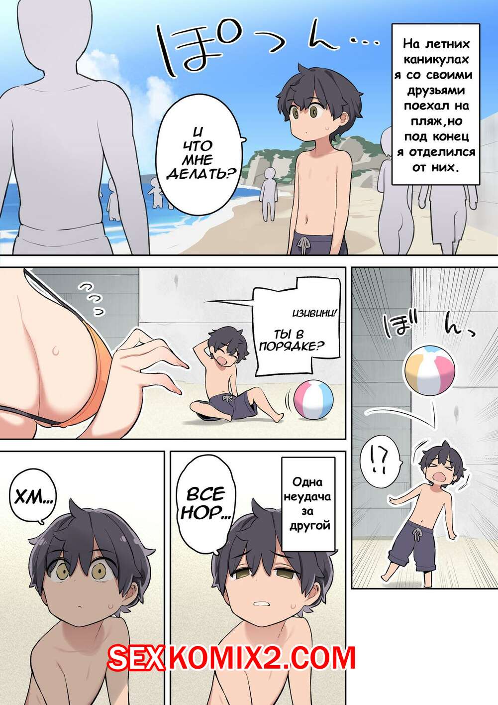 Порно комикс Как я встретил сексуальную девушку на пляже. Nora Higuma Молодой парнишка привлек на пляже внимание сисястой красотки. Она осталась с парнишкой наедине и возбудила его шикарным телом, после чего стала сосать хуй парня и дала ему себя выебать.
