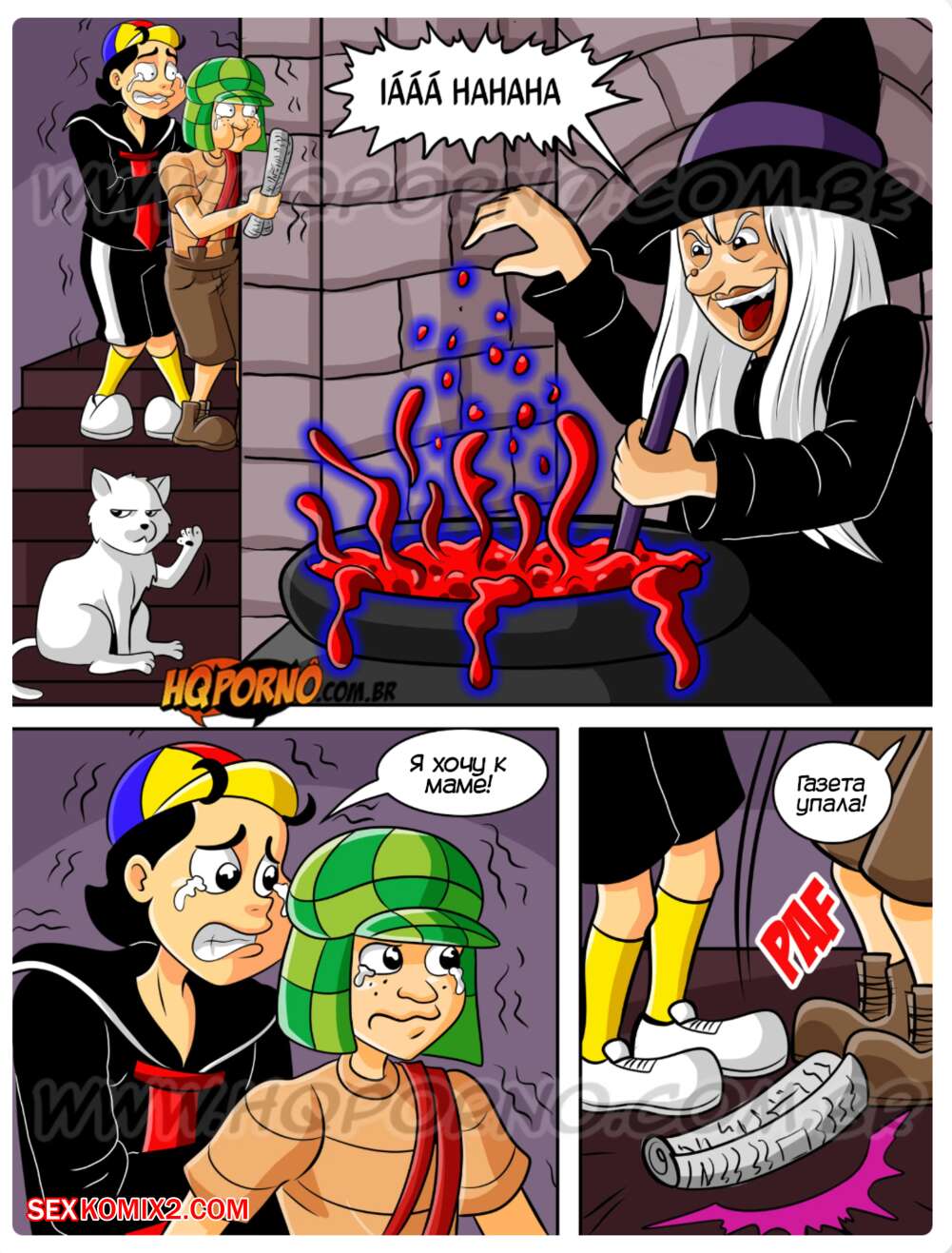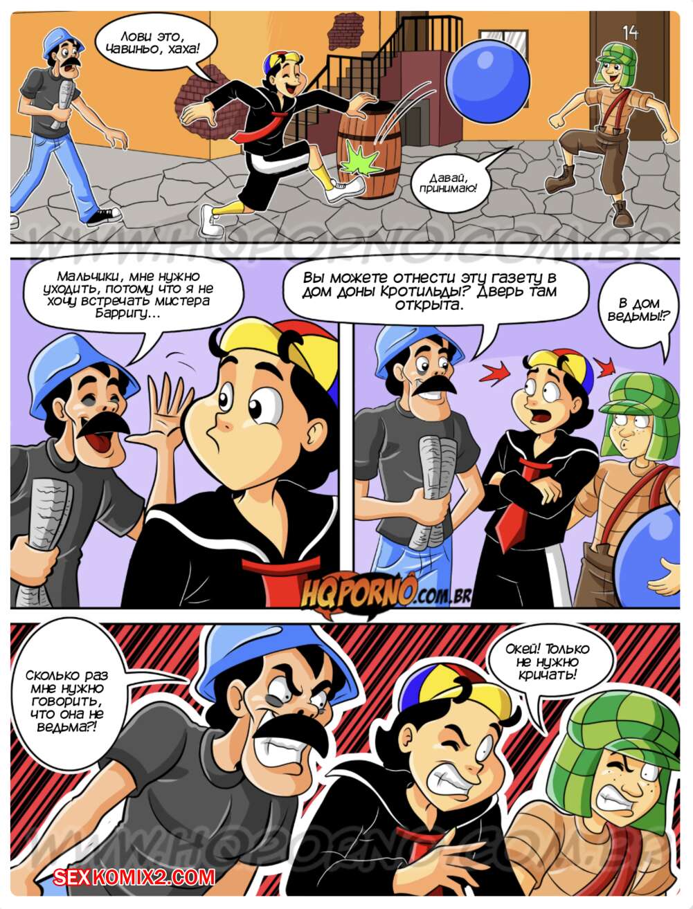 Порно комикс Чавиньо. Часть 22. Chavinho. HQporno Два друга понесли газету в дом горячей милфы и помешали ее ритуалу. Дамочка решила воспользоватся моментом и стала сосать хуи парней, после чего дала им себя хорошенько выебать.