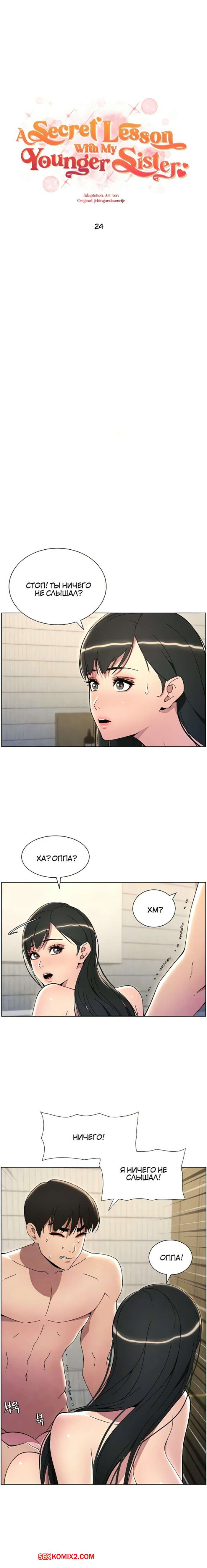 Порно комикс Тайный урок с моей сестрой. Часть 23 и 24 и 25 и 26 Парень с девушкой пошли принять душ и решили пошалить. Парень стал ласкать пизденку своей сестренки, от чего она сильно возбудилась и дала парню себя хорошенько выебать.