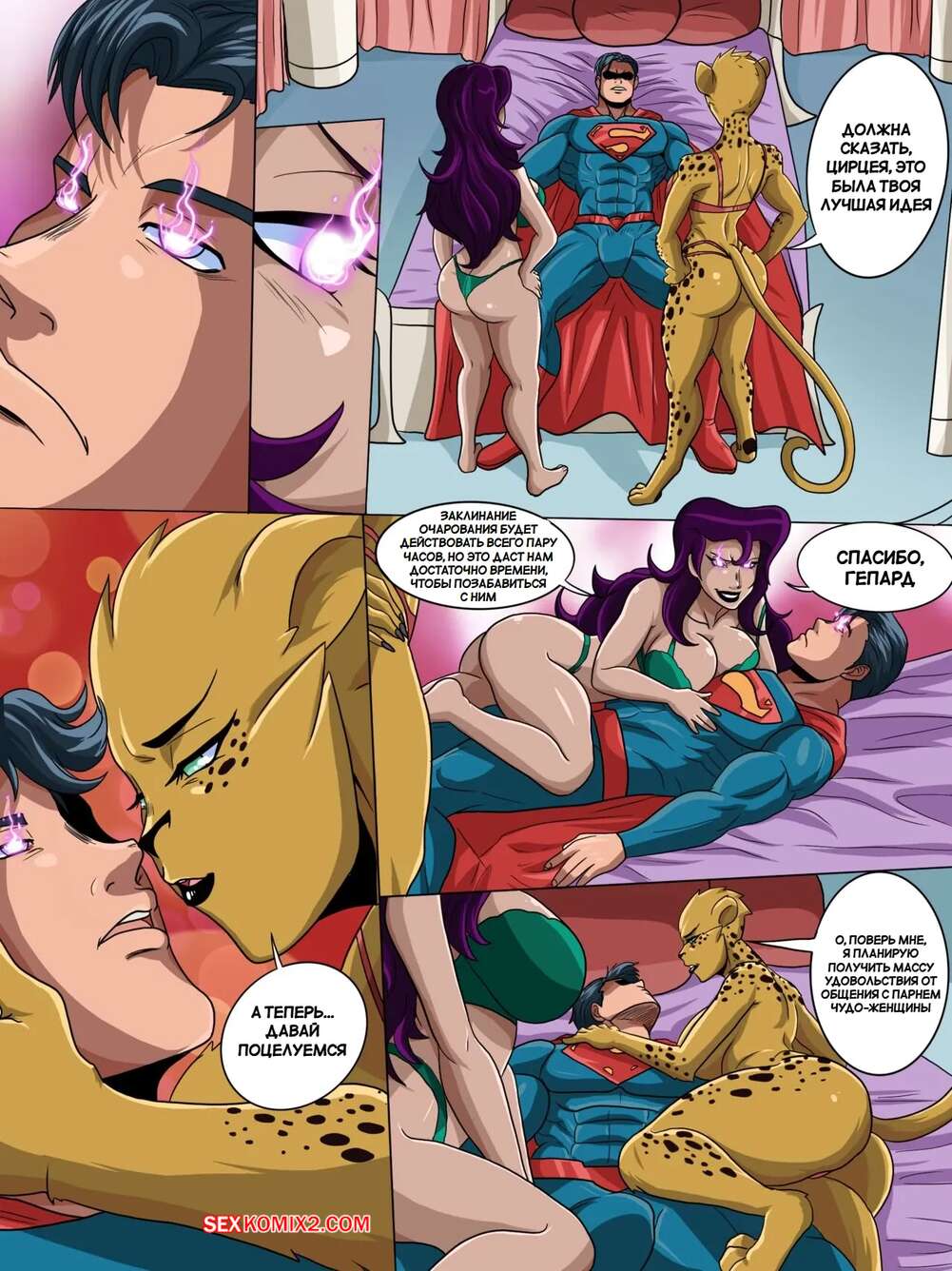 Порно комикс DC. Большая порция супер Ч. Big Helping of Super D. ninja8004. Горячие суперзлодейки заманили Супермена к себе в логово и решили с ним повеселиться. Девушки возбудили героя и отсосали его член, после чего дали ему себя хорошенько выебать.