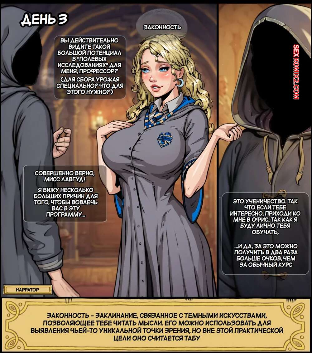 Порно комикс Гарри Поттер. Руководство по груммингу Хогвартса. Полумна Лавгуд. CrextComic В Хогвартсе появился новый профессор, который положил глаз на Полумну Лавгуд. Он приглашает сексуальную блондинку на индвидуальные встречи, чтобы наслаждаться ее шикарным телом.