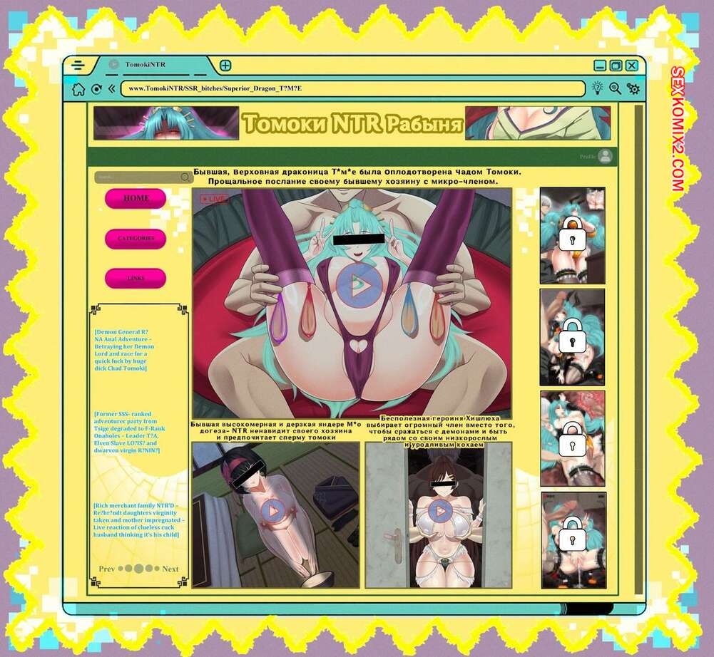 Порно комикс Tsukimichi NTR. Tomoki Bad End. NTRYurian Горячие красотки без ума от большого члена своего дружка. Они раздеваются и сосут хуй парня, после чего раздвигают ножки и дают ему себя хорошенько выебать, получая огромное удовольствие.
