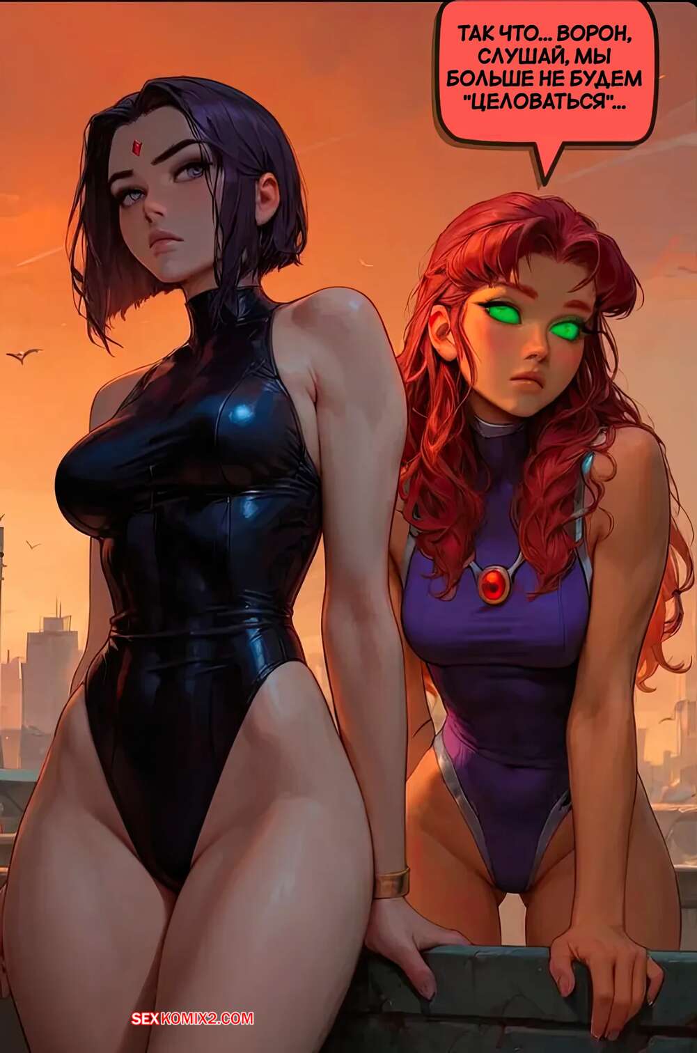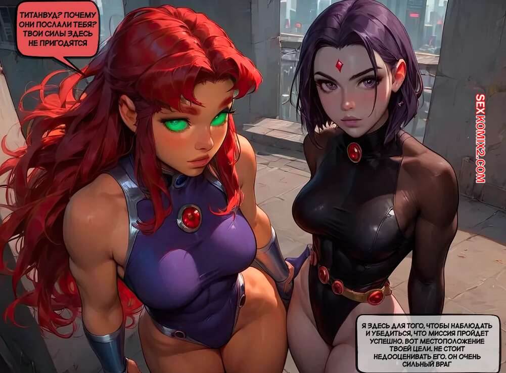 Порно комикс Teen Titans. Миссия неправдоподобна. Mission Implausible. Bearly L. Eagle Рейвен и Старфайр были очень возбуждены и хотели трахаться. Они разделись и стали ласкать друг дружку, после чего к ним присоединился их дружок и хорошенько их выебал.