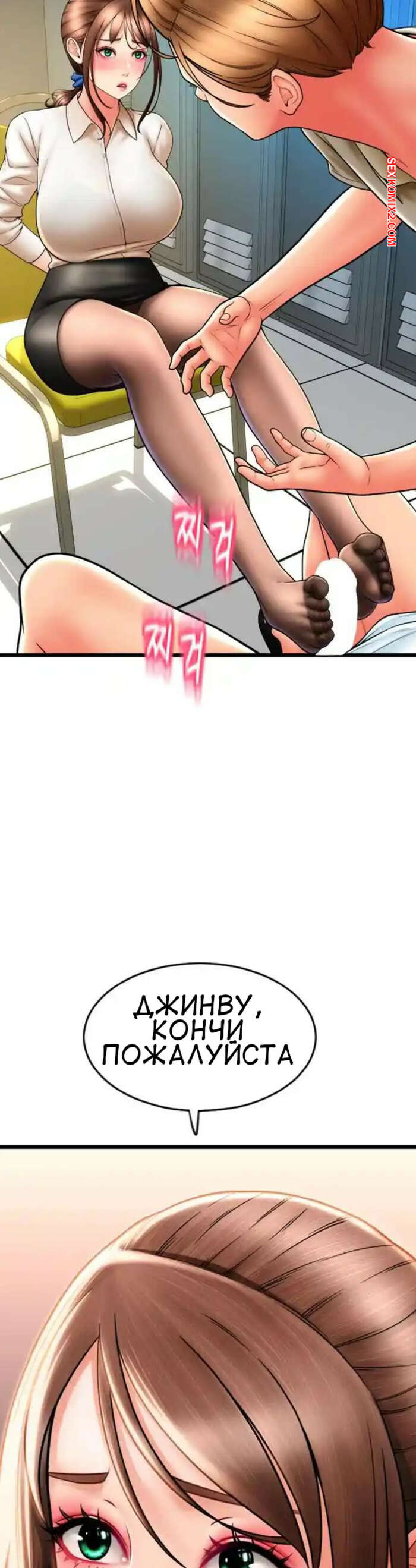 Порно комикс Оплата приложением Сперм Пэй. Часть 68. Pay with sperm pay Горячая брюнетка была очень возбуждена и решила повеселиться со своим дружком. Она достала член парня и стала дрочить его ножками, желая поскорее заставить парня кончить.