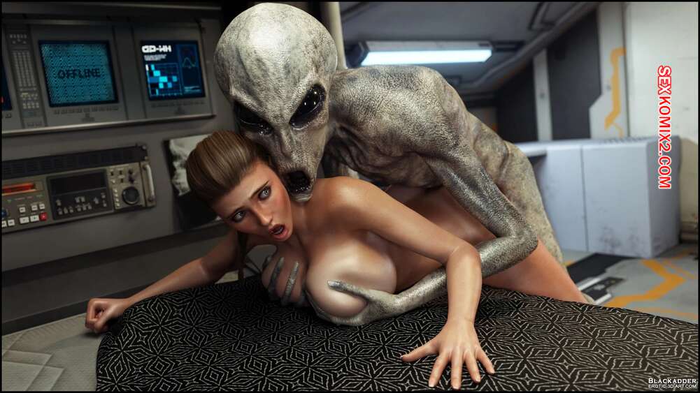 Порно комикс Megan. Chapter 7. Blackadder Горячую брюнетку Меган схватил инопланетянин, желающий насладиться телом девушки. Он дал ей отсосать свой большой хуй, посел чего выебал ее во все дырочки.