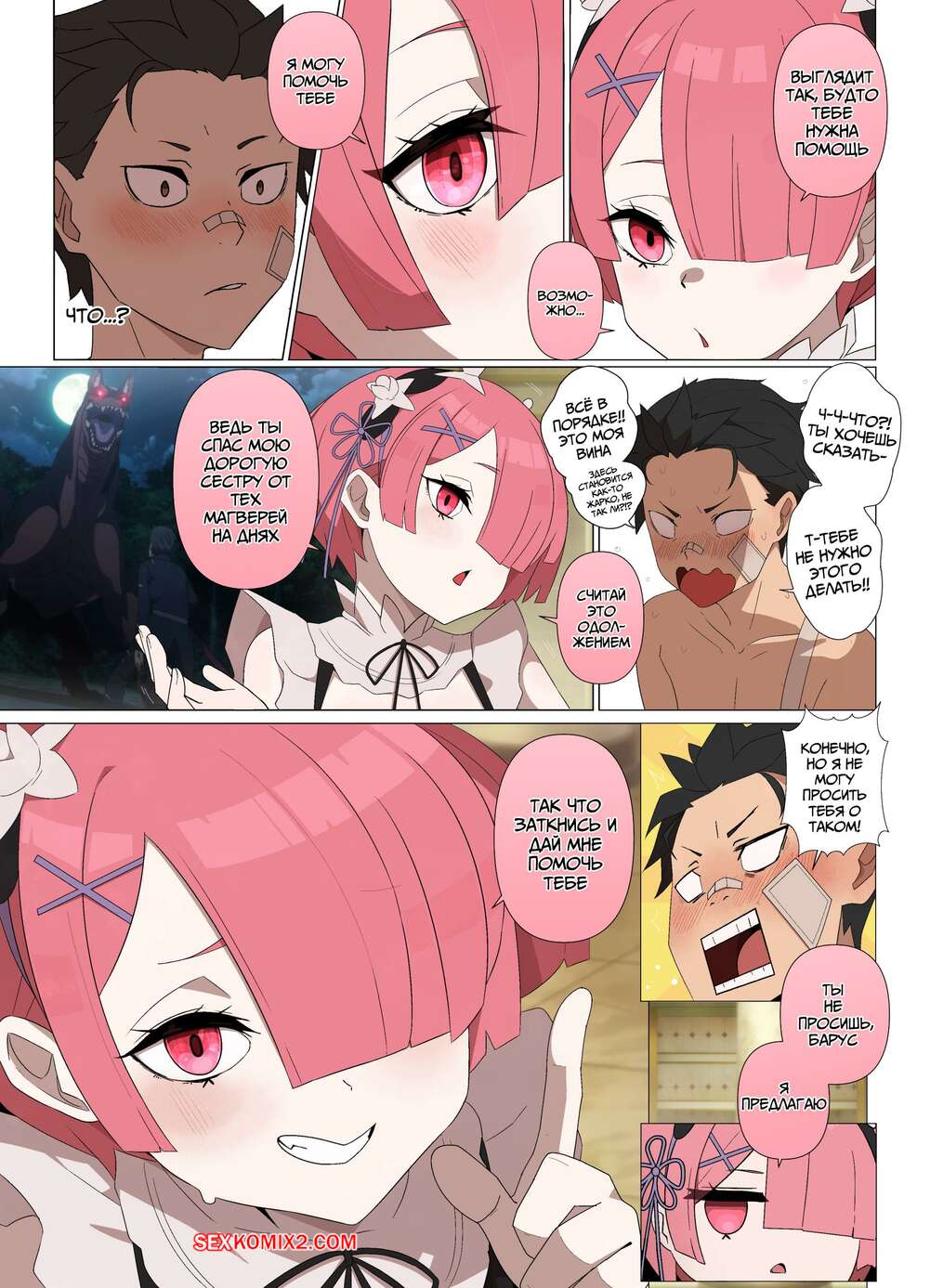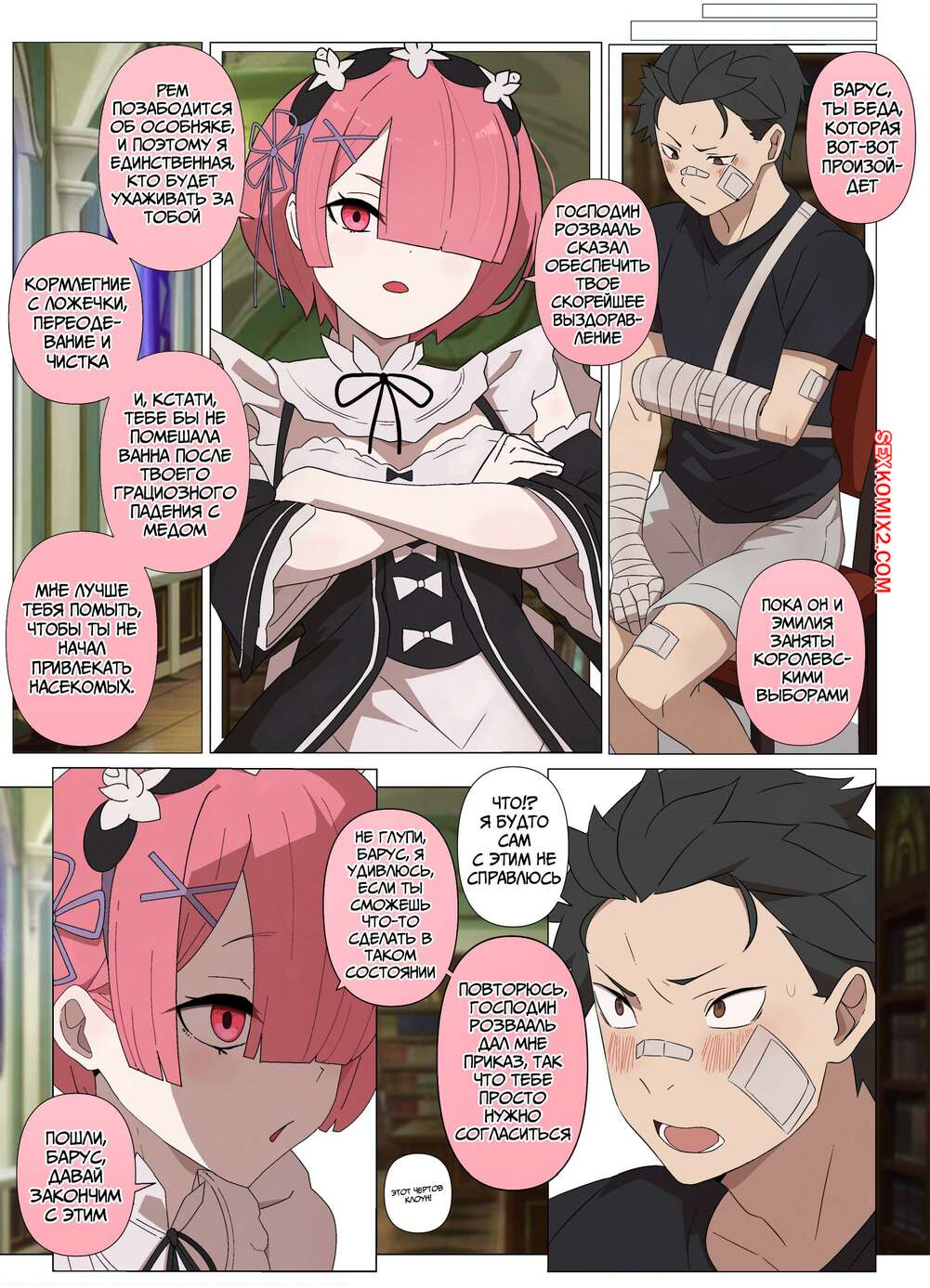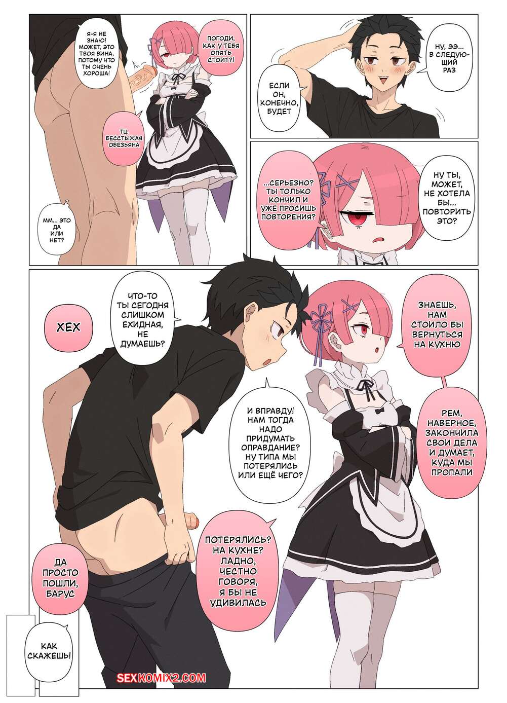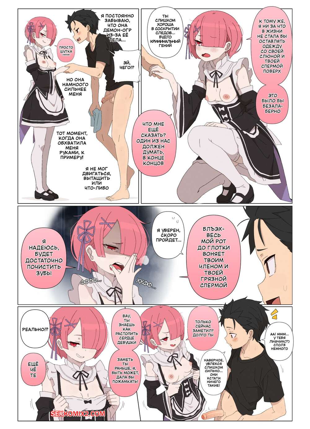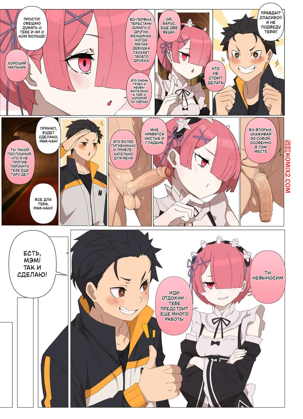 Порно комикс Проникая в Рам. Часть 2. Ramming Ram. Fenqury Горячая горничная соблазнила мастера своим шикарным телом и возбудила его. Она встала на колени и стала дрочить хуй парня, доставляя ему невероятное удовольствие.