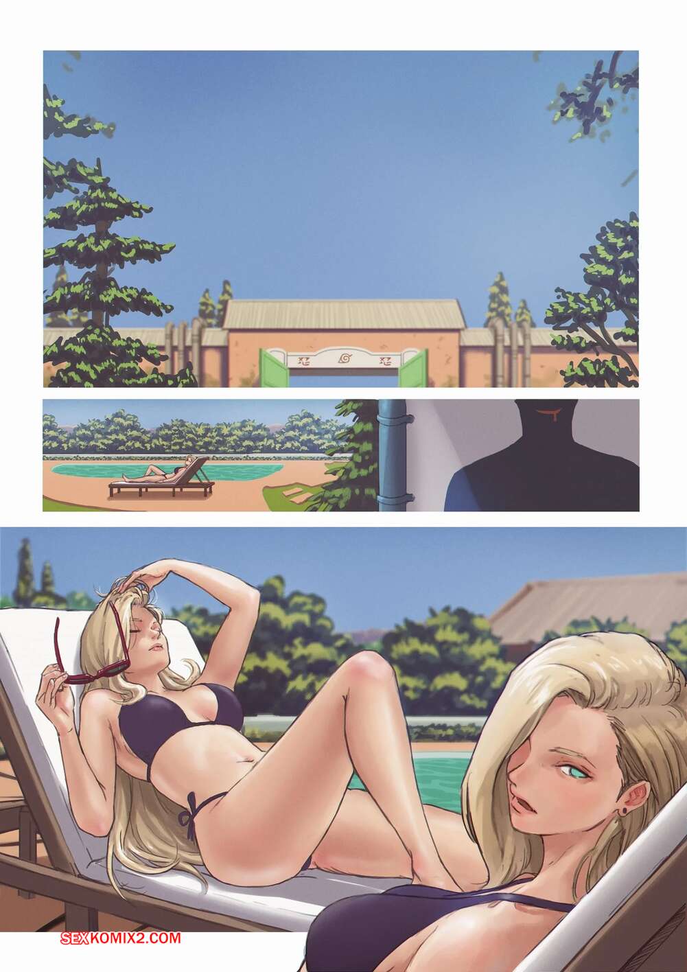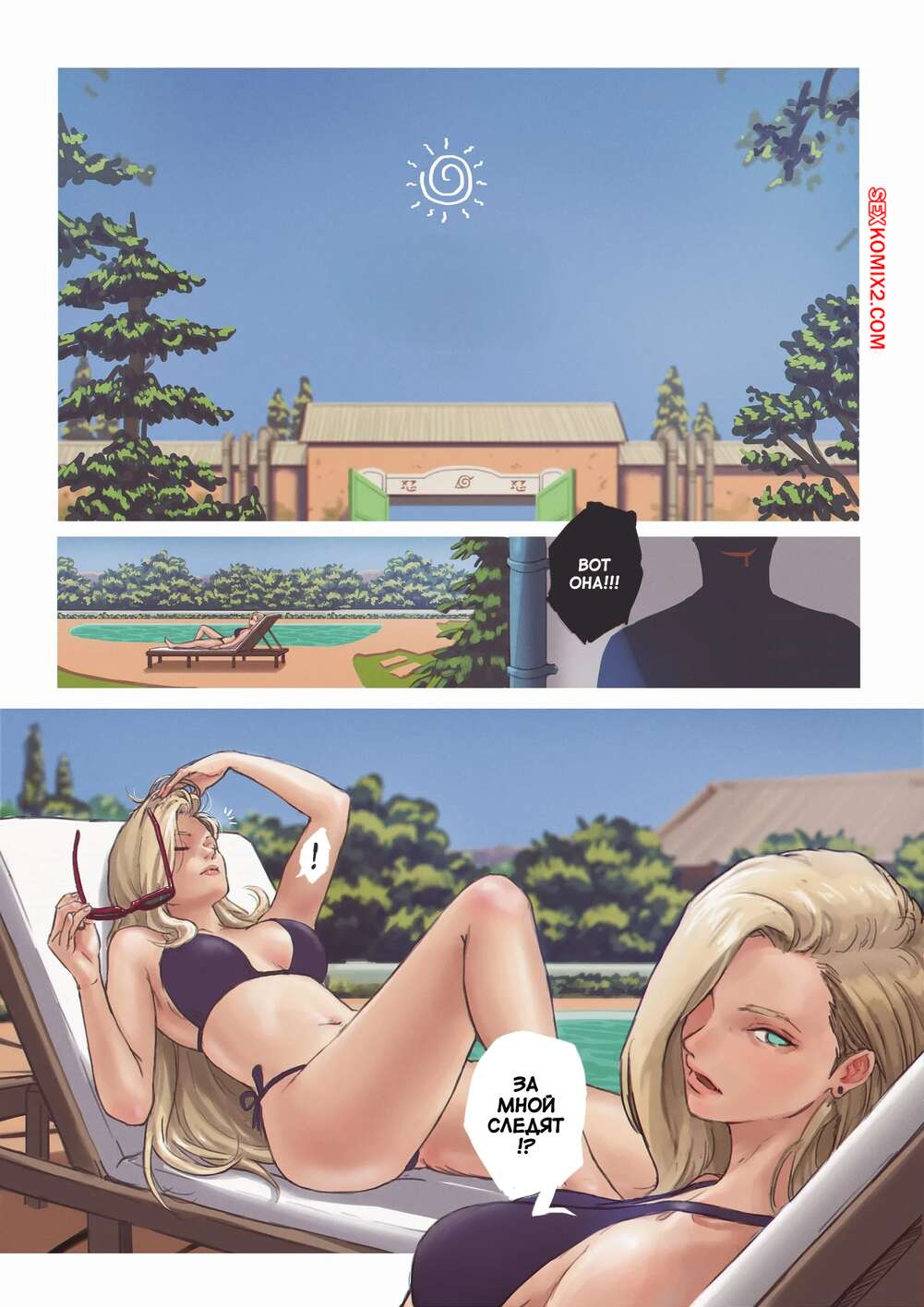 Порно комикс Наруто. Летняя жара. Summer Heat. TSFSingularity, CunCyun. Горячая блондинка отдыхала у бассейна, но в ее тело вселился незнакомец. Красотка сняла трусики и стала ласкать свою пизденку, от чего получила невероятное удовольствие.
