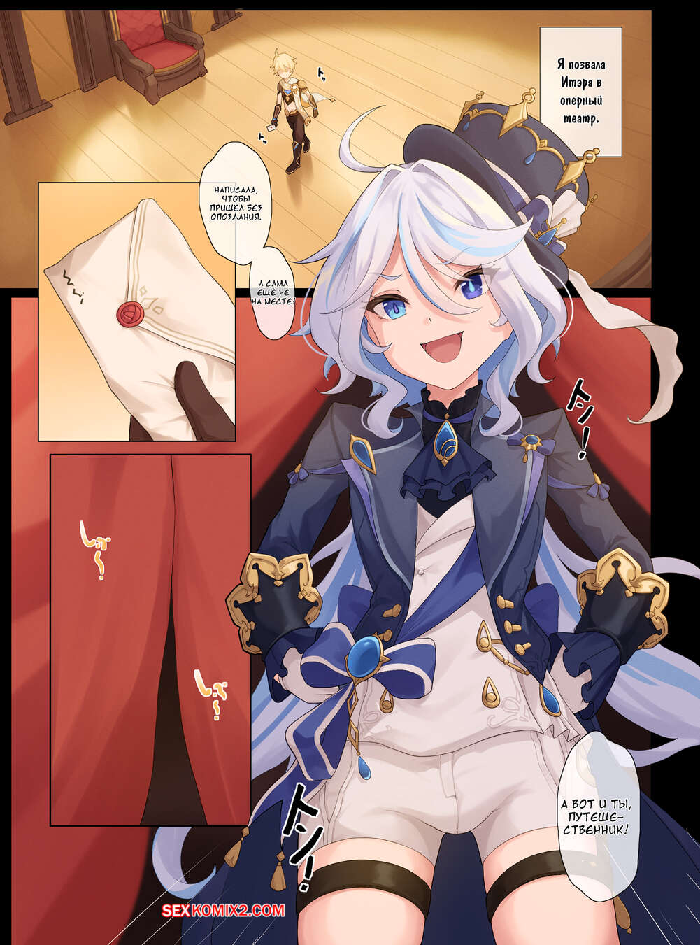 Порно комикс Genshin Impact. Furinas Challenge. Furina no Shoubu. Gueya Фурина была очень возбуждена и решила повеселиться со своим дружком. Она соблазнила парня, после чего стала дрочить его член ножками, помогая ему хорошенько кончить.