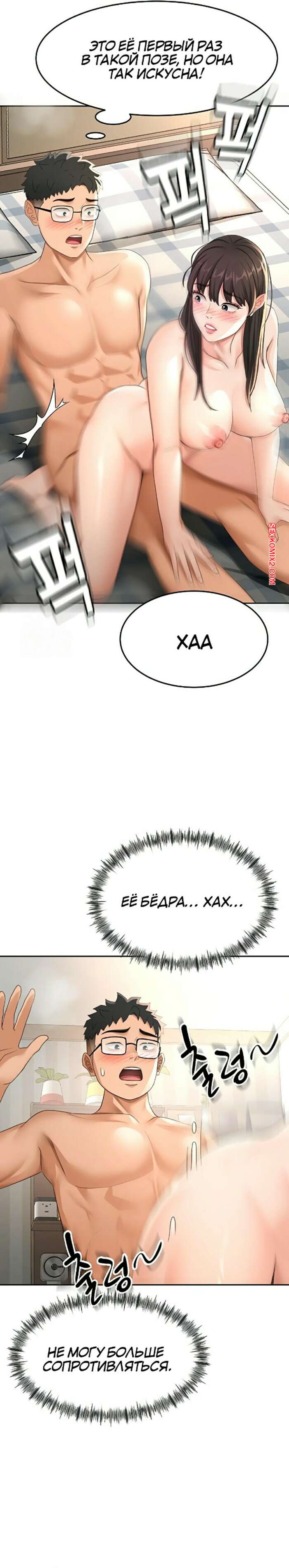 Порно комикс Король секса на крыше. Часть 25 и 26 и 27 Парень с девушкой поддались страсти и стали страстно целоваться. Брюнеточка легла на кровать и раздвинула ножки, после чего дала дружку выебать свою пизденку.