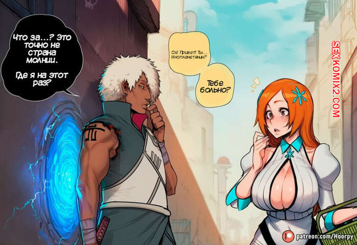 Порно комикс Bleach. Межпространственная встреча с Орихиме. Hoorpy. Орихиме встретилась с темнокожим парнем из другого измерения и стала его соблазнять. Девушка разделась и отсосала хуец парня, после чего дала ему выебать свою попку.
